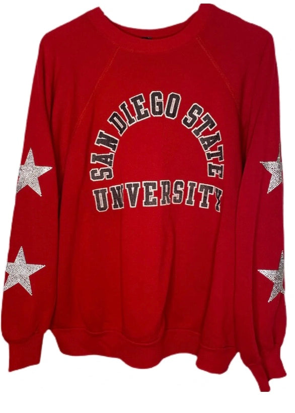 San Diego State University, One of a KIND Vintage Sweatshirt with Crystal Star Design