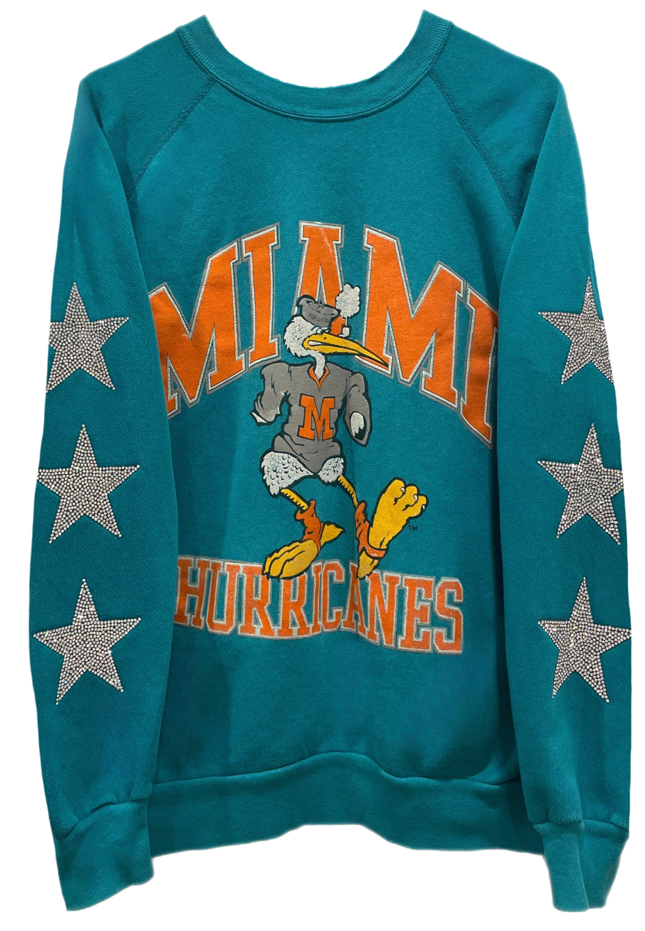 University of Miami, One of a KIND Vintage Miami Hurricanes Sweatshirt with Three Crystal Star Design