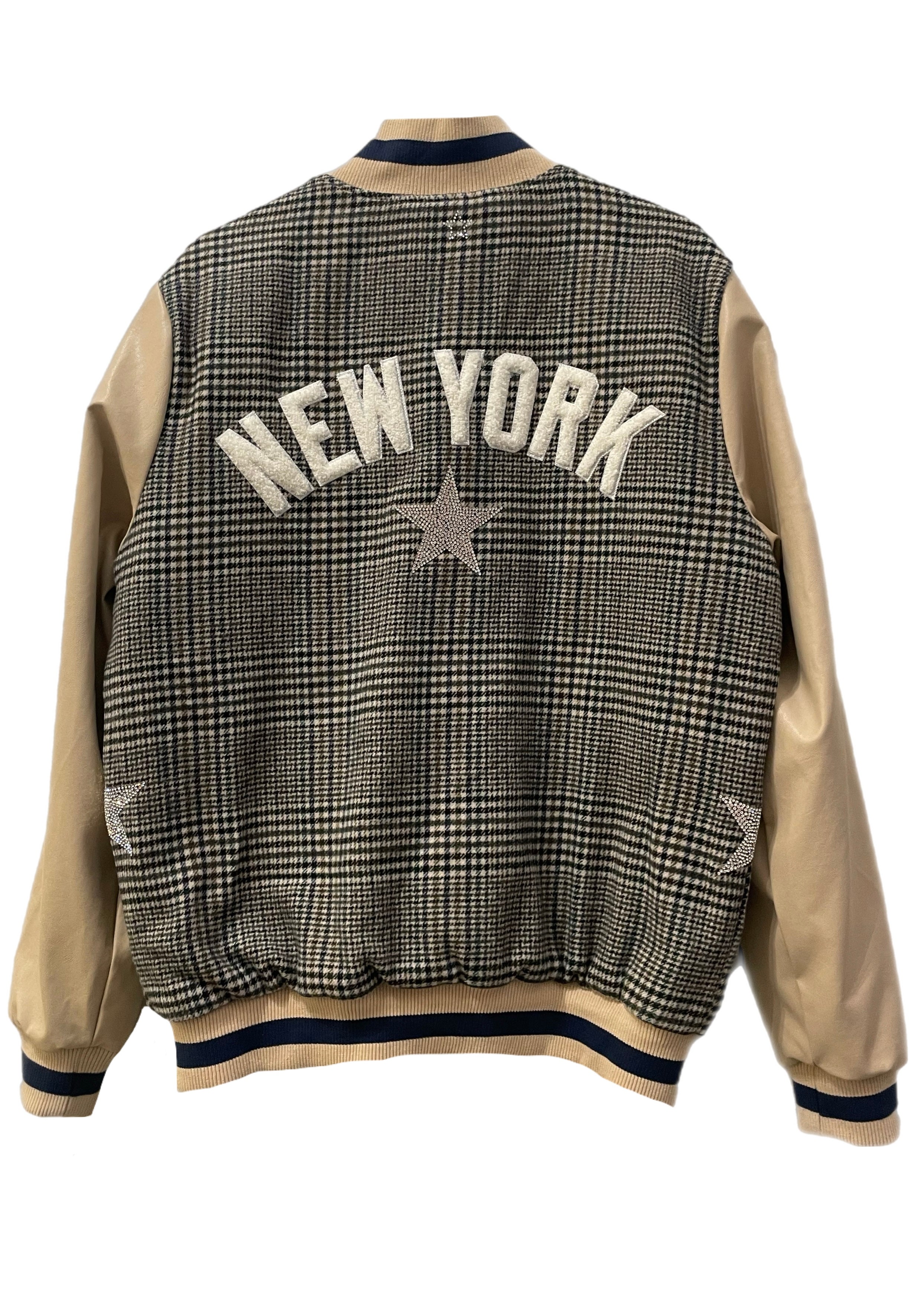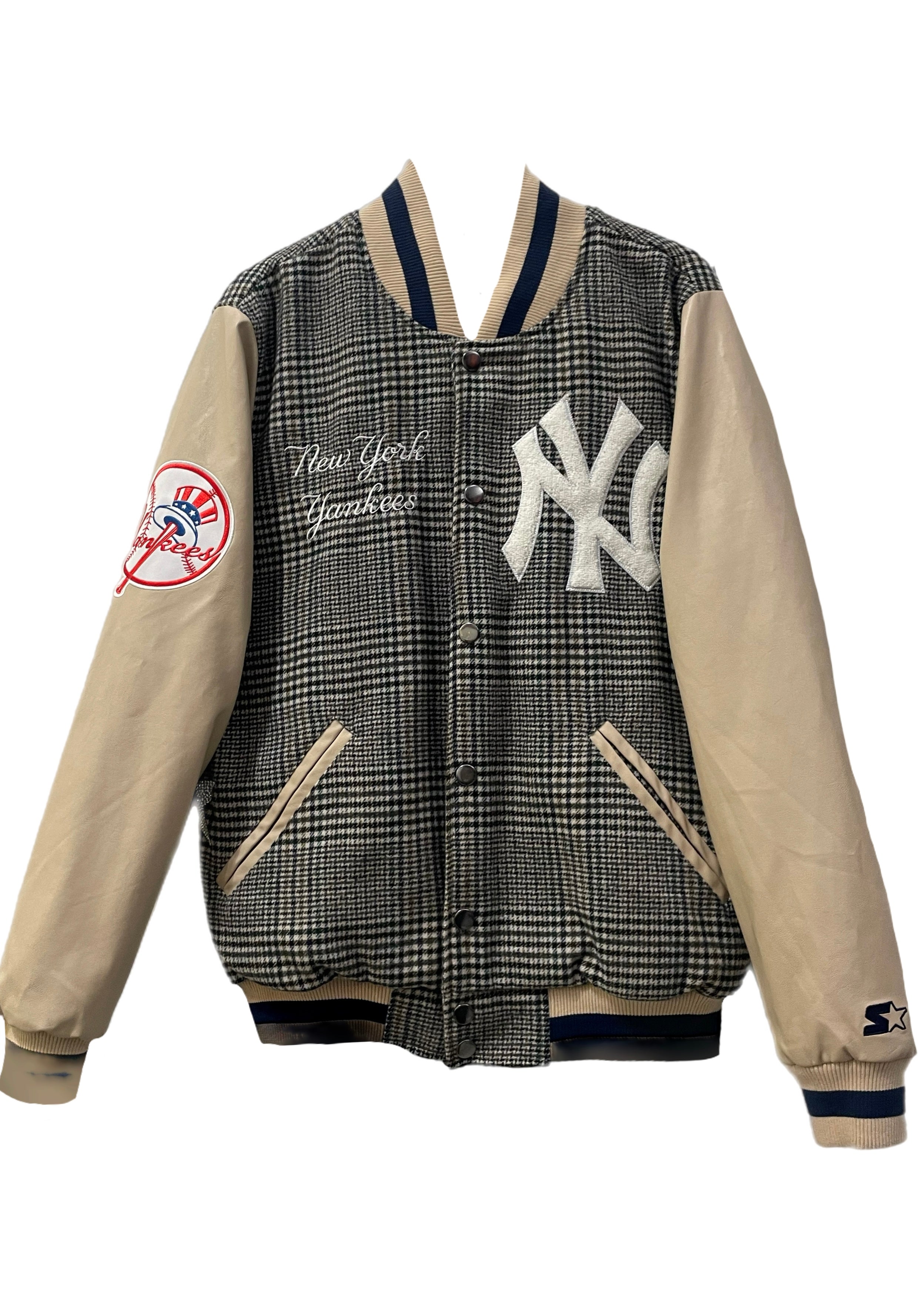 NY Yankees, Baseball One of a KIND Vintage Starter Plaid and Leather Jacket With Crystal Star Design