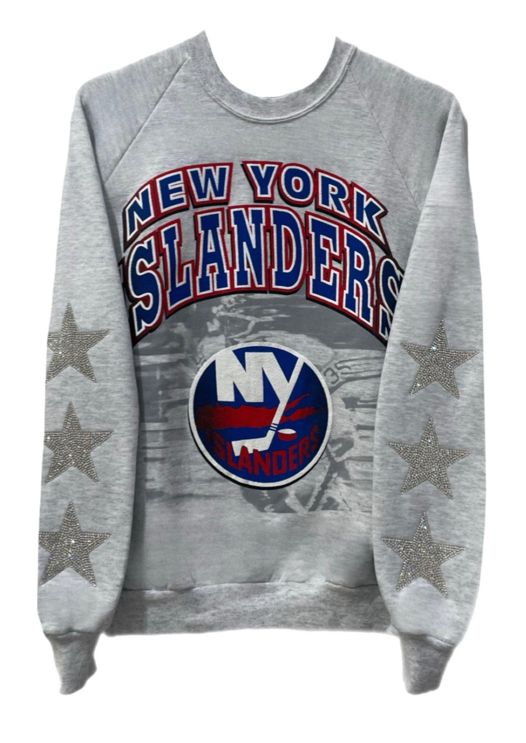 NY Islanders, Hockey One of a KIND Vintage Sweatshirt with Three Crystal Star Design