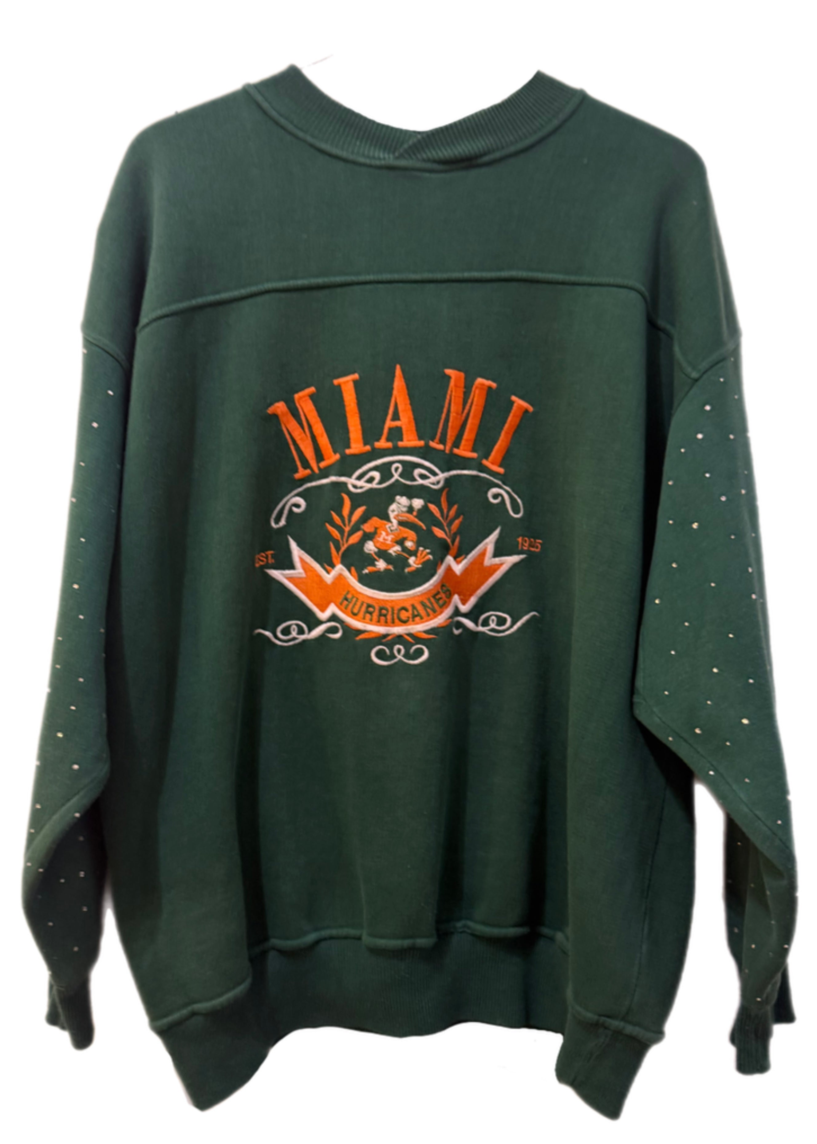 University of Miami, One of a KIND Vintage Miami Hurricanes Sweatshirt with All Over Crystal Design