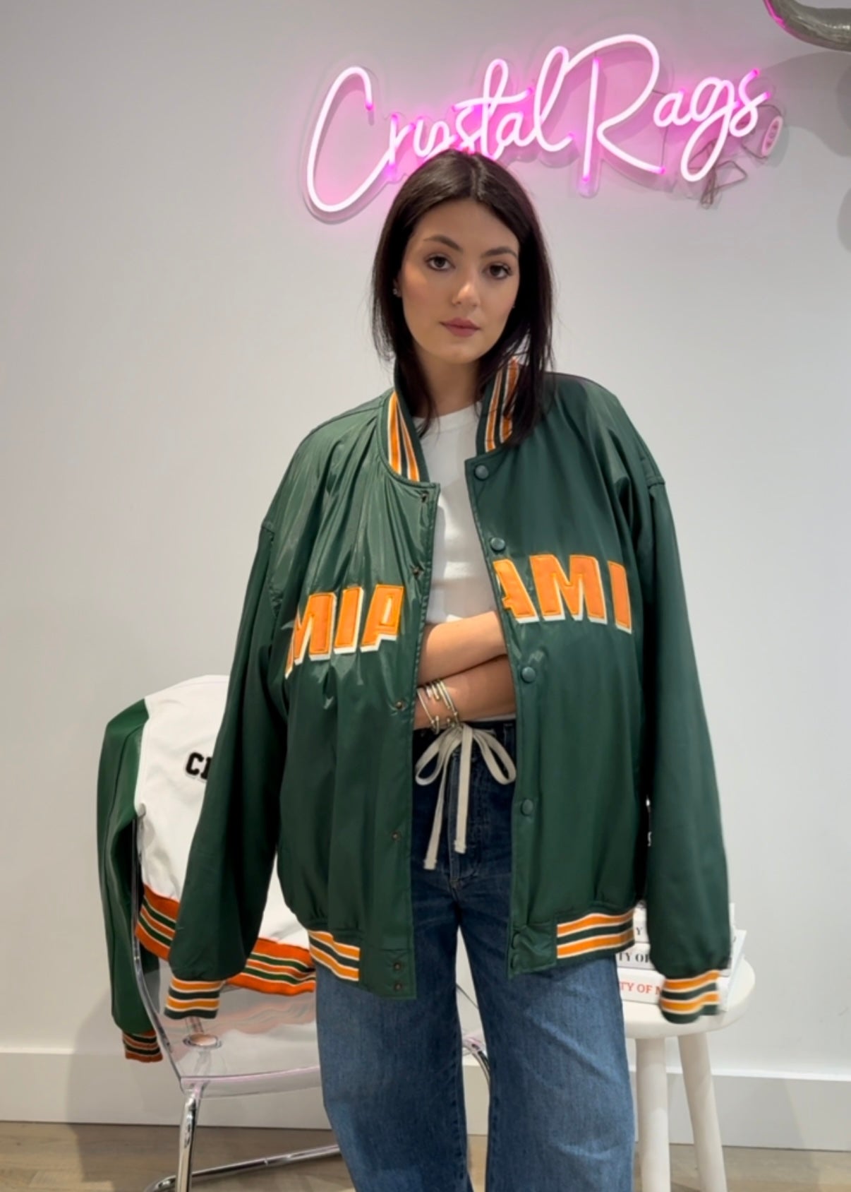 University of Miami, One of a KIND Vintage Miami Hurricanes Zip Up with Crystal Star Design