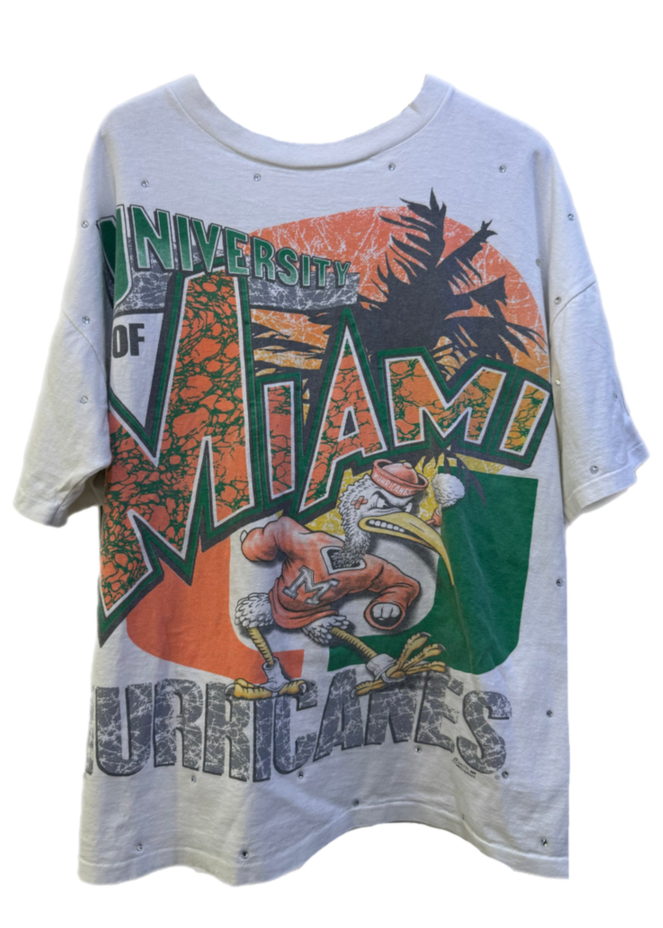 University of Miami, One of a KIND Vintage Miami Hurricanes “Rare Find” T-Shirt with All Over Crystal Design