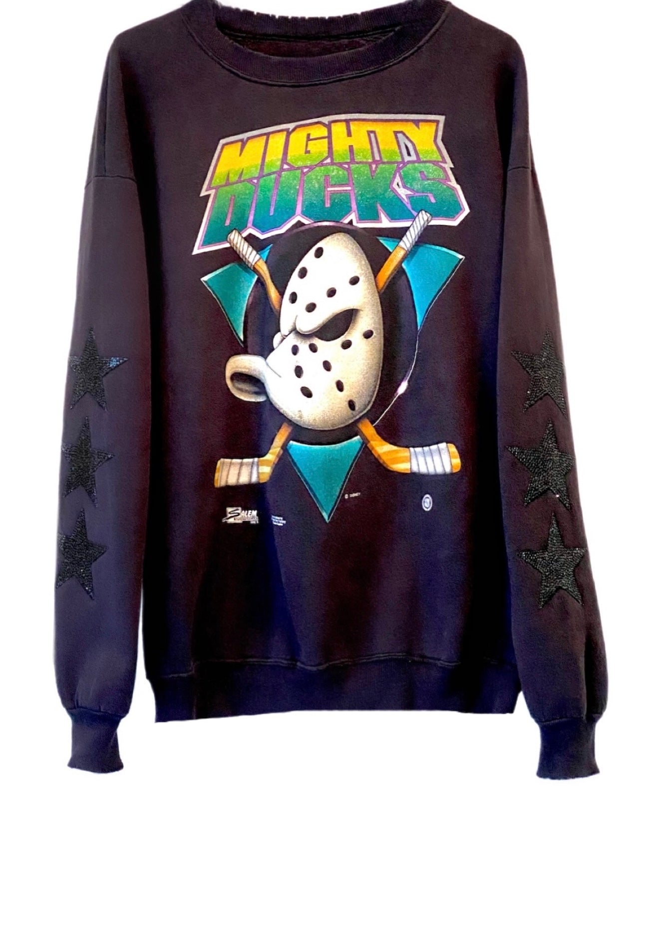 Anaheim Ducks, Hockey One of a KIND “Early 90’s” Vintage “Mighty Ducks” Sweatshirt with Three Black Crystal Star Design