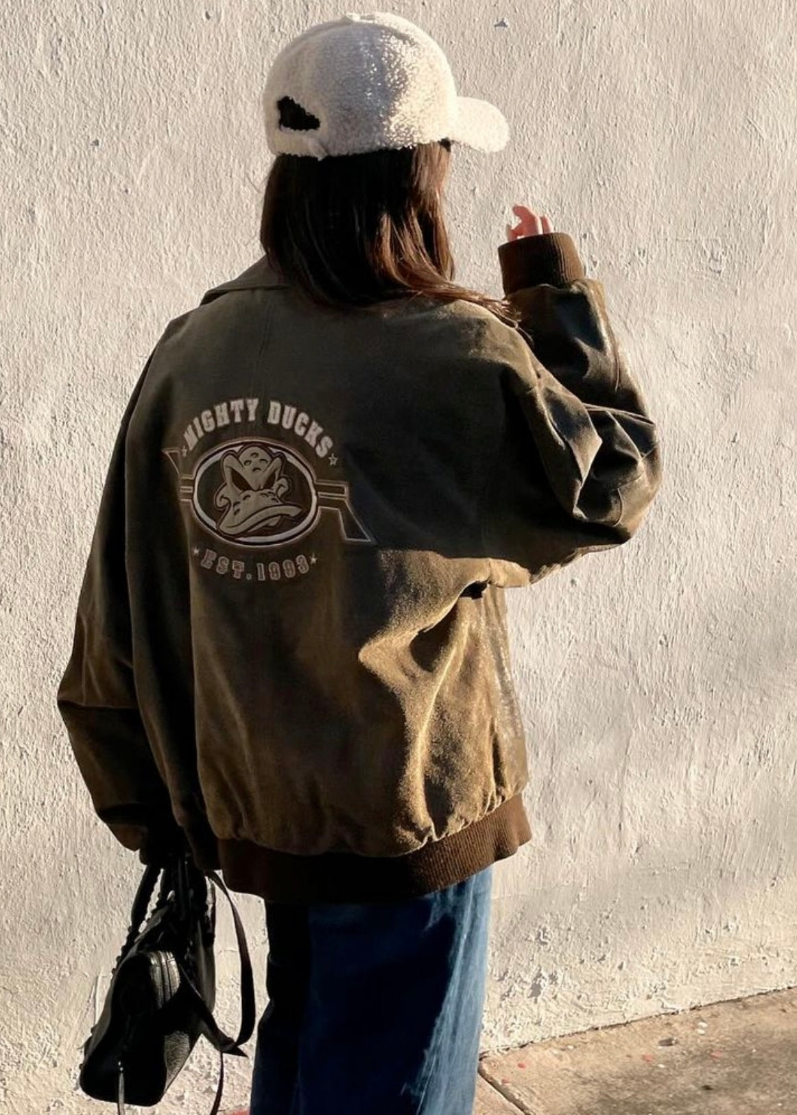 Anaheim Ducks, Hockey One of a Kind Vintage “Mighty Duck” Super Rare Find Leather Jacket - Soft, frayed, oversized depending on the person - Size: L - Color: Weathered Brown Leather