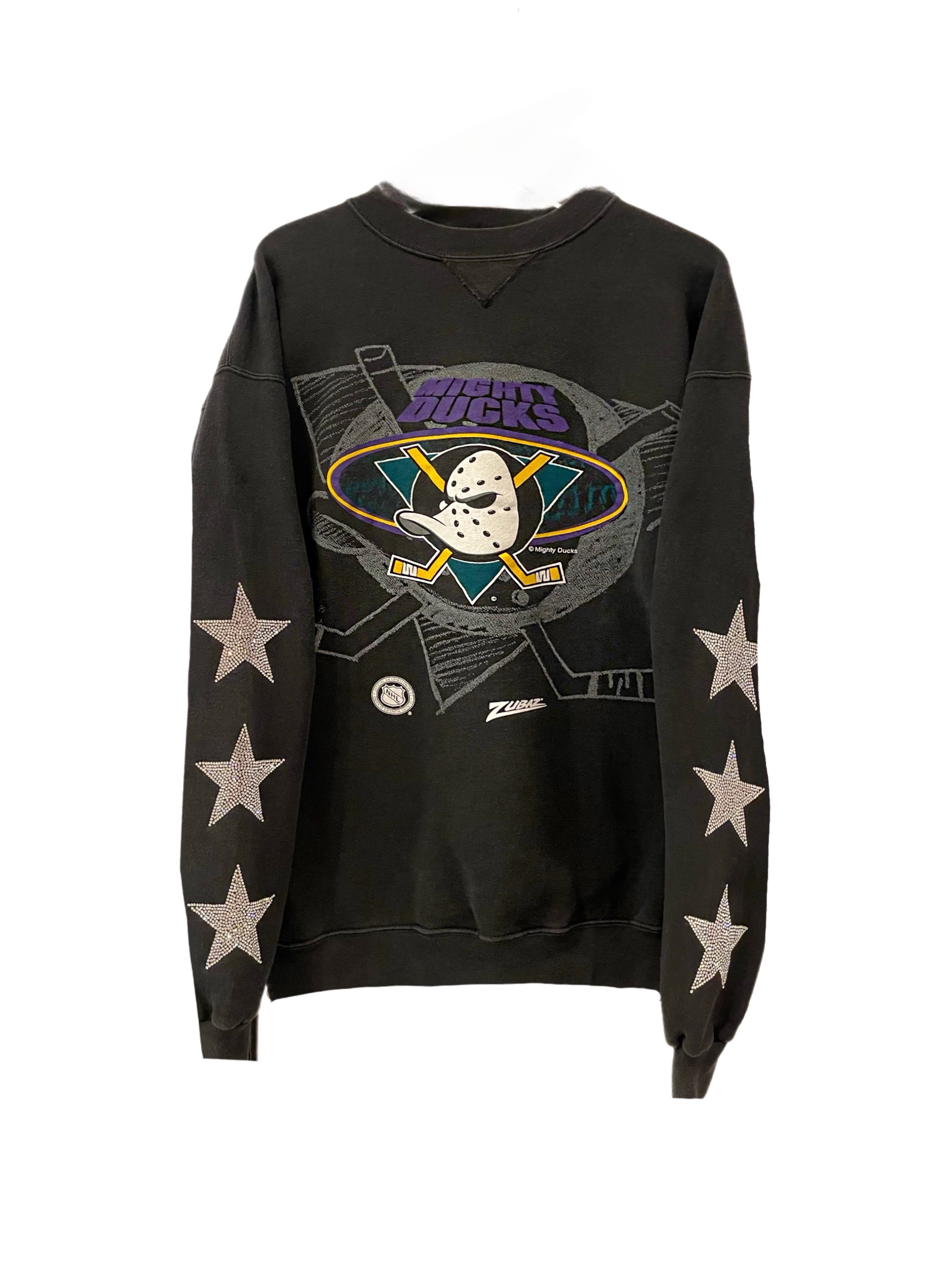 Anaheim Ducks, Hockey One of a KIND Vintage Mighty Ducks “Rare Find” Sweatshirt with Three Crystal Star Design.
