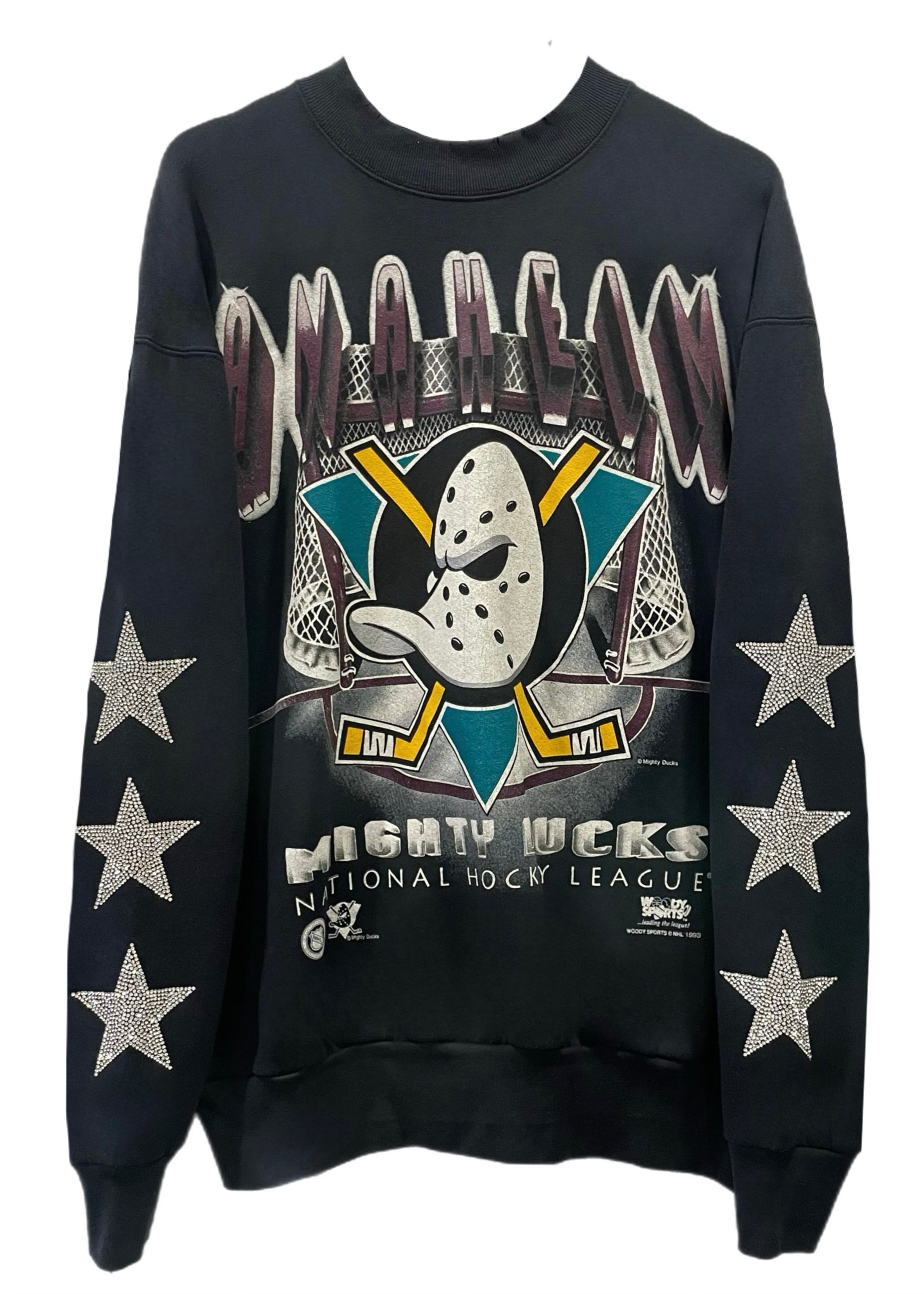 Anaheim Ducks, Hockey One of a KIND Vintage “Mighty Ducks” Super Rare Find 1993 Sweatshirt with Three Crystal Star Design