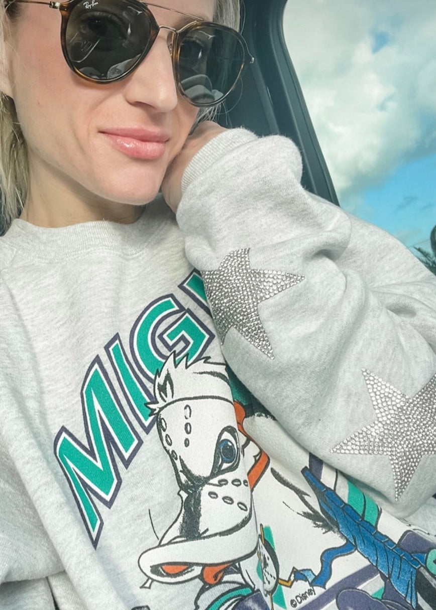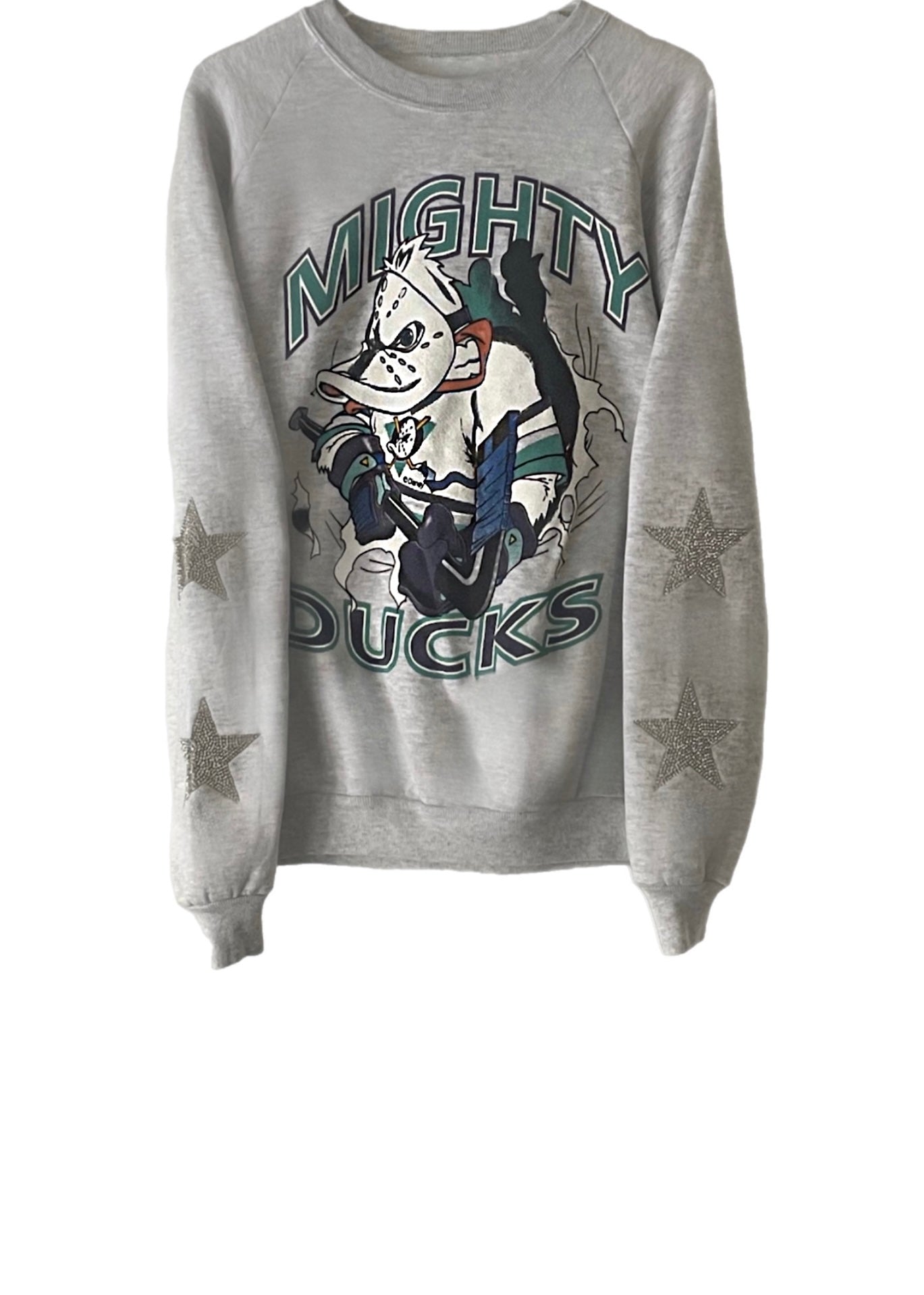 Anaheim Ducks, Hockey One of a KIND Vintage “Mighty Ducks” Sweatshirt with Crystal Star Design.