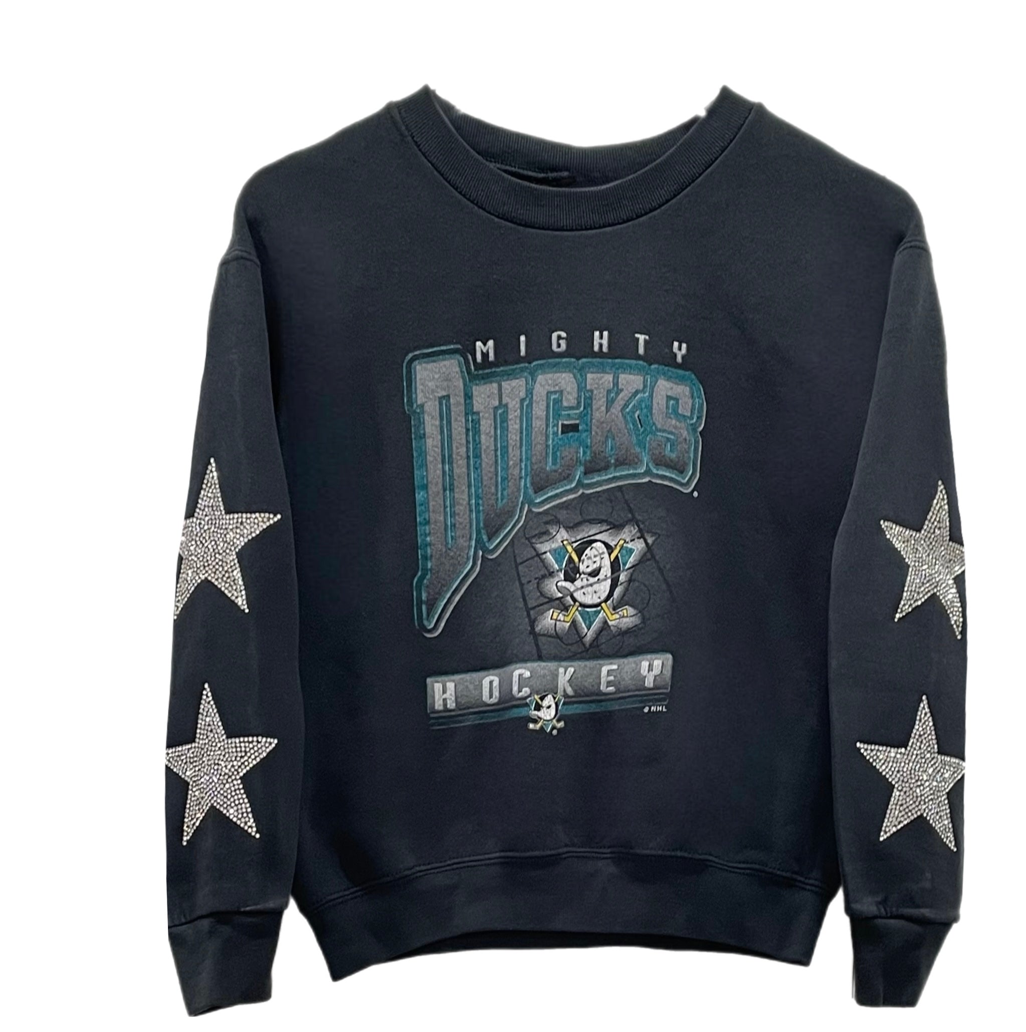 Anaheim Ducks, Hockey One of a KIND Vintage “Mighty Ducks” Sweatshirt with Crystal Star Design.