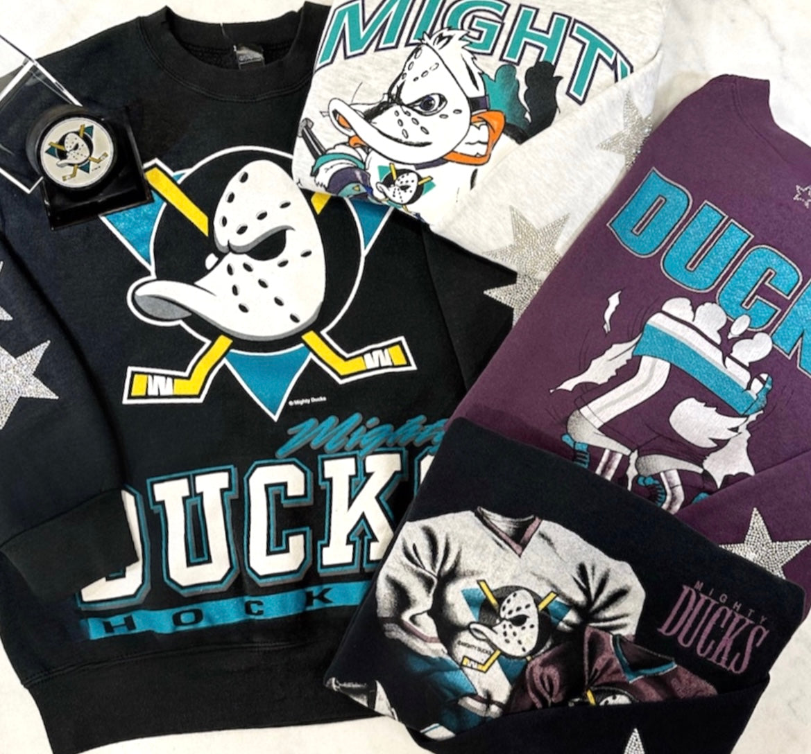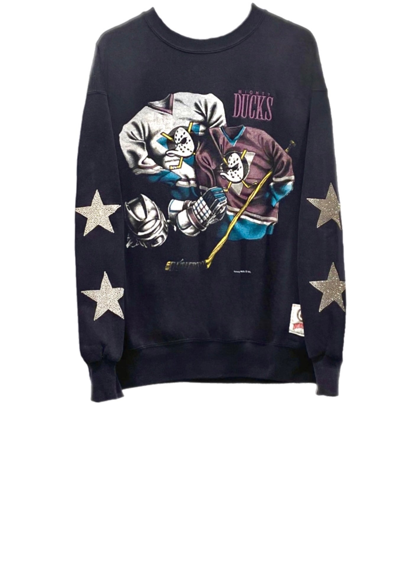Anaheim Ducks, Hockey One of a KIND Vintage “Mighty Ducks” Sweatshirt with Crystal Star Design.