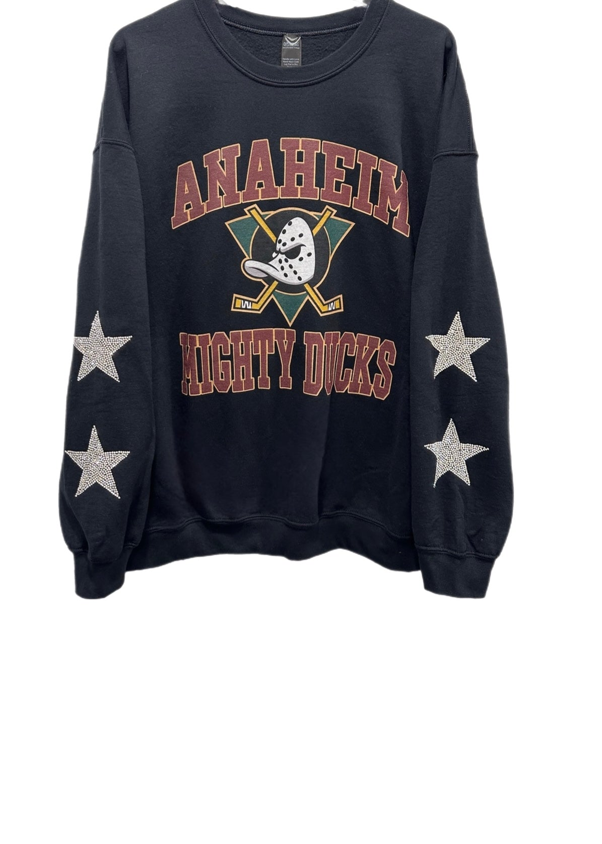 Anaheim Ducks, Hockey One of a KIND Vintage “Mighty Ducks” Sweatshirt with Crystal Star Design.