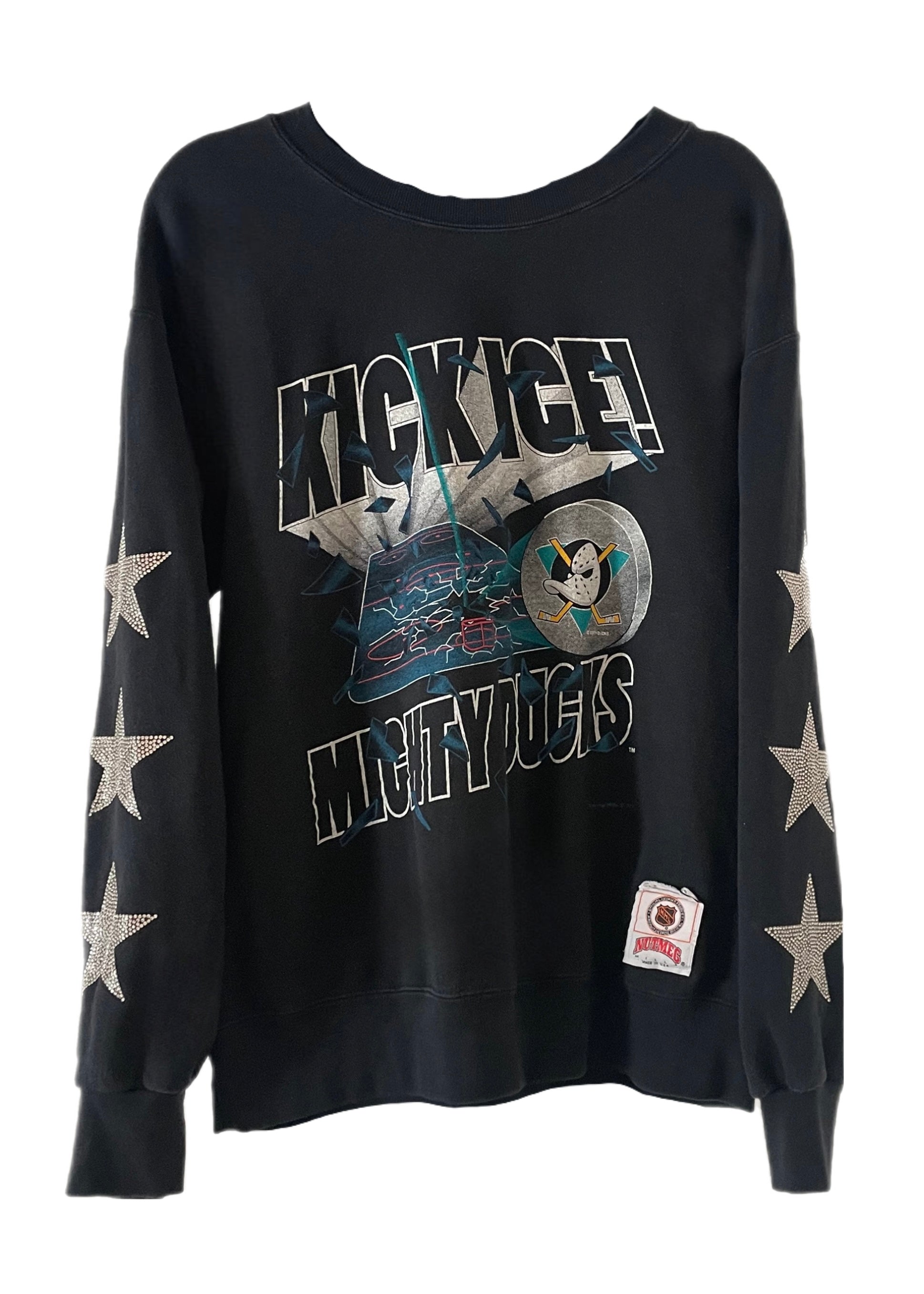 Anaheim Ducks, Hockey One of a KIND Vintage “Rare Find, Mighty Ducks” Sweatshirt with Three Crystal Star Design. - Soft, frayed & oversized depending on the person