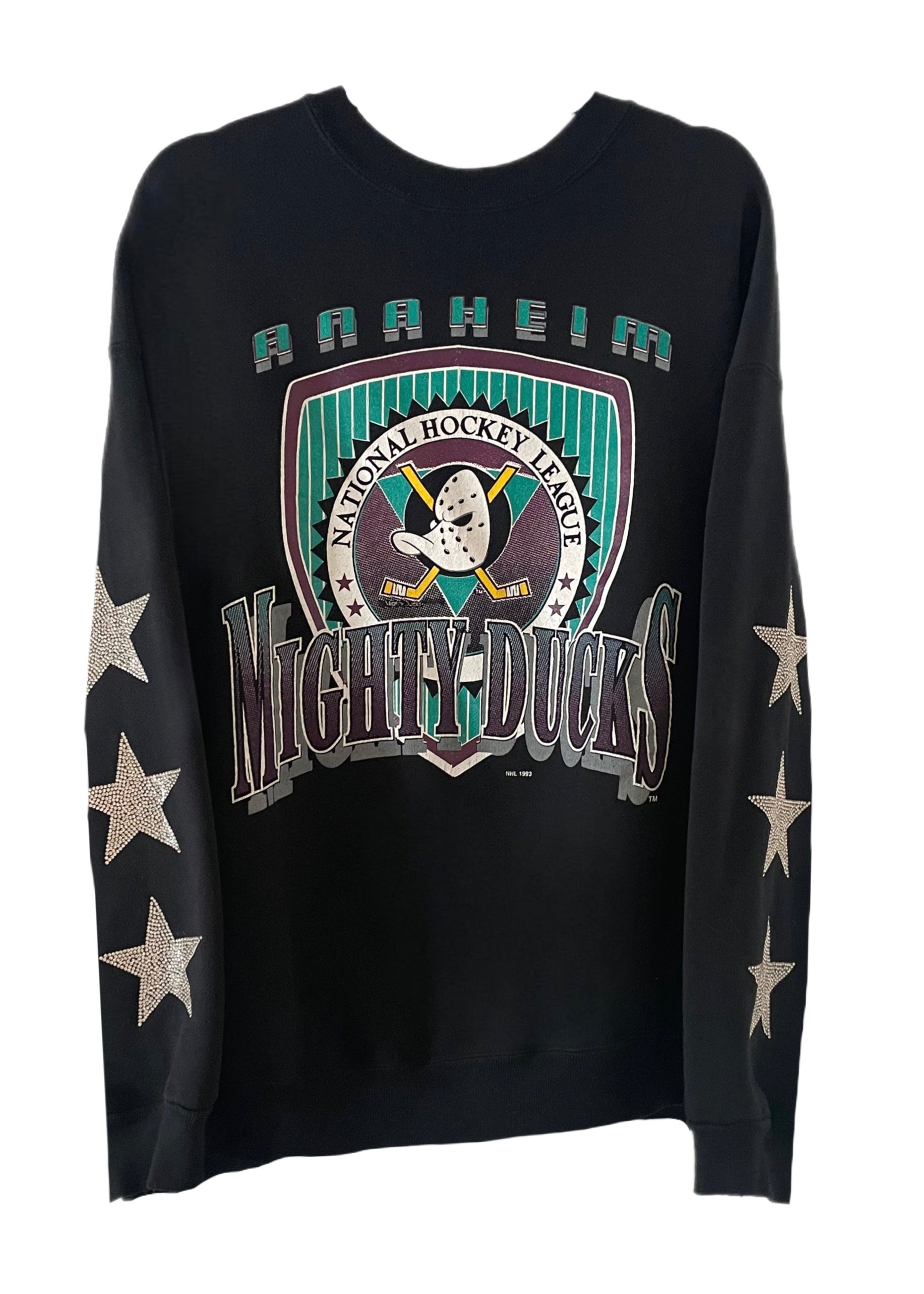 Anaheim Ducks, Hockey One of a KIND Vintage “Mighty Ducks” Sweatshirt with Three Crystal Star Design.