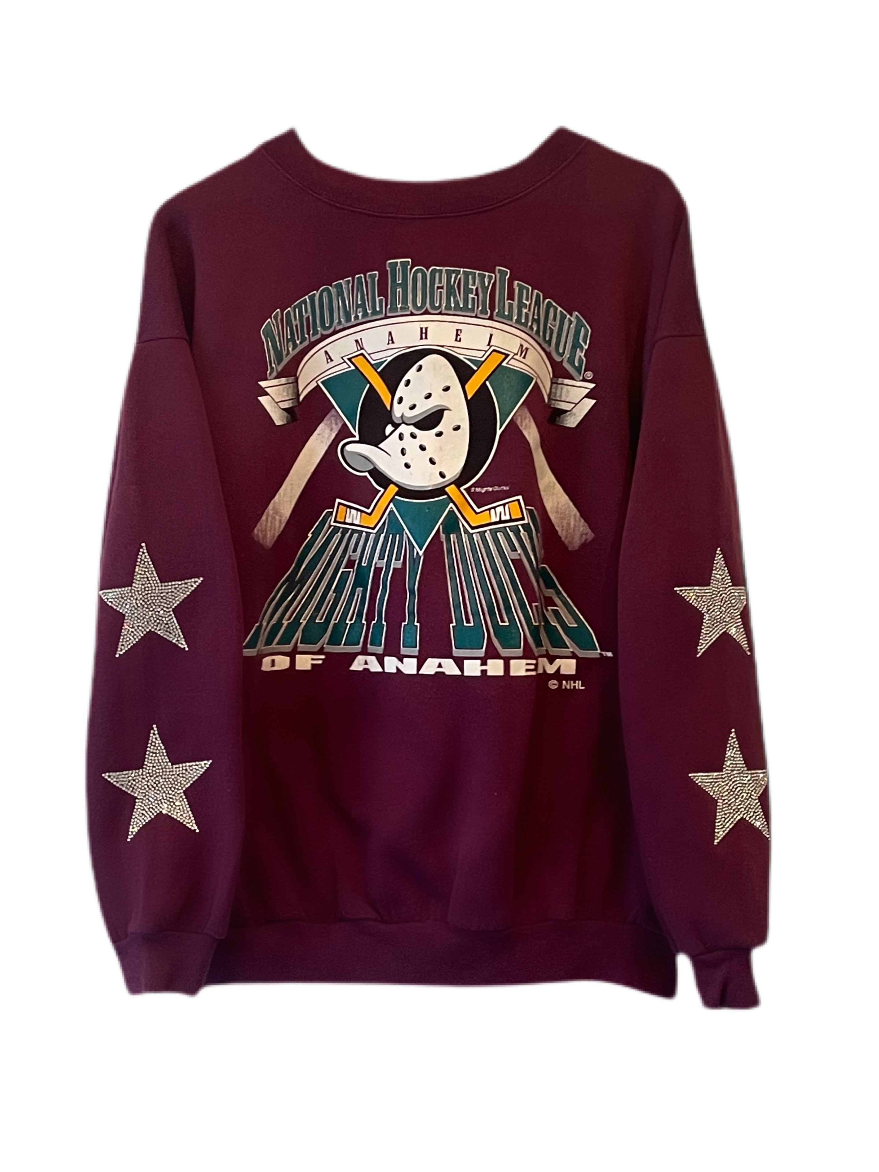 Anaheim Ducks, Hockey One of a KIND Vintage “Mighty Ducks” Sweatshirt with Crystal Star Design