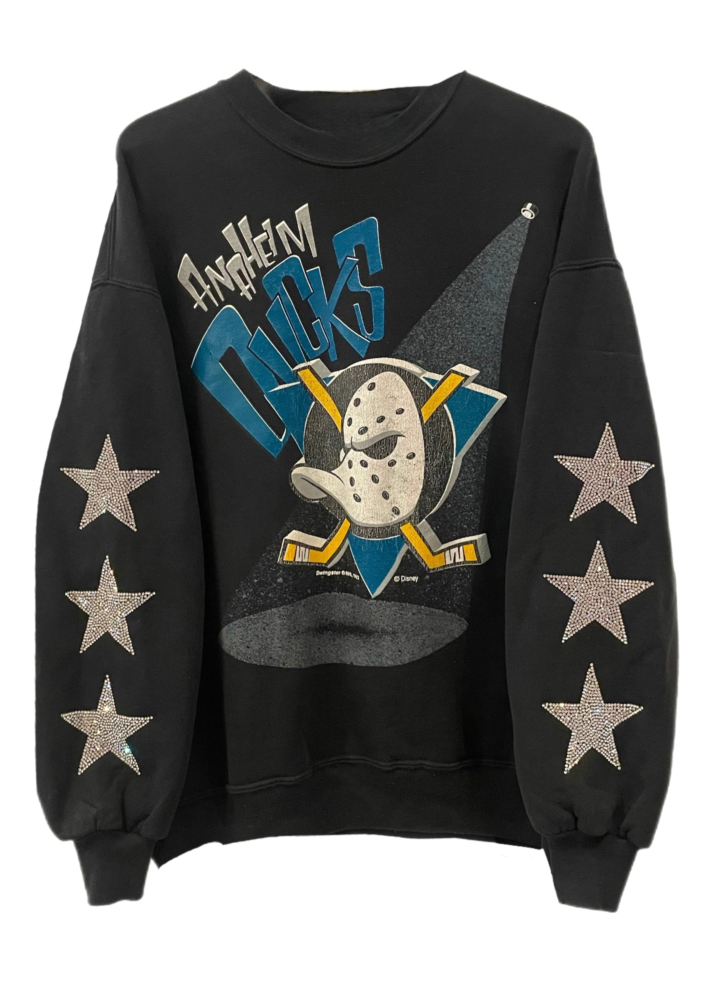 Anaheim Ducks, Hockey One of a KIND Vintage “Mighty Ducks” Sweatshirt with Three Crystal Star Design