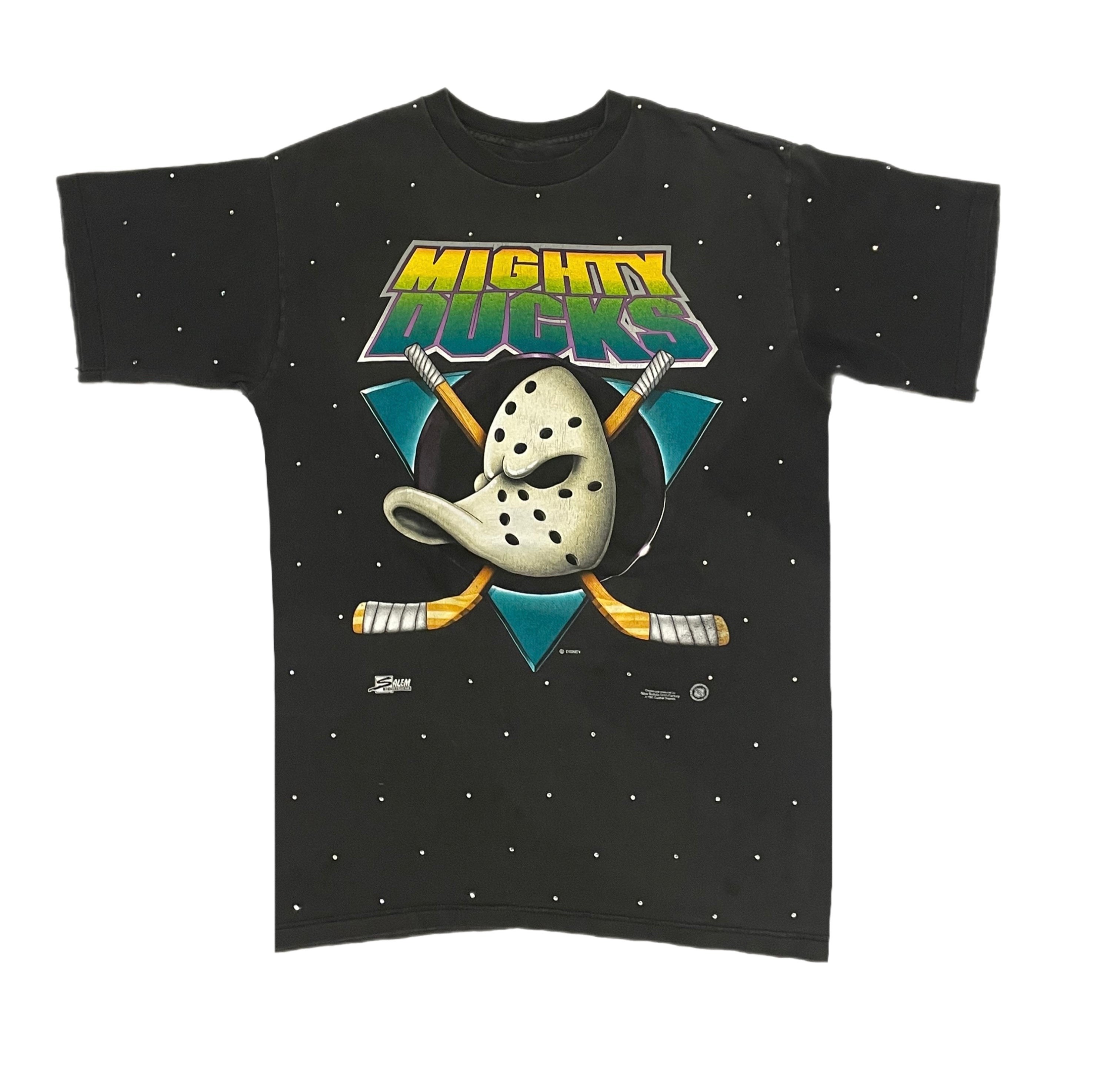 Anaheim Ducks, Hockey One of a KIND Vintage “Mighty Ducks” Tee with Overall Crystal Design.