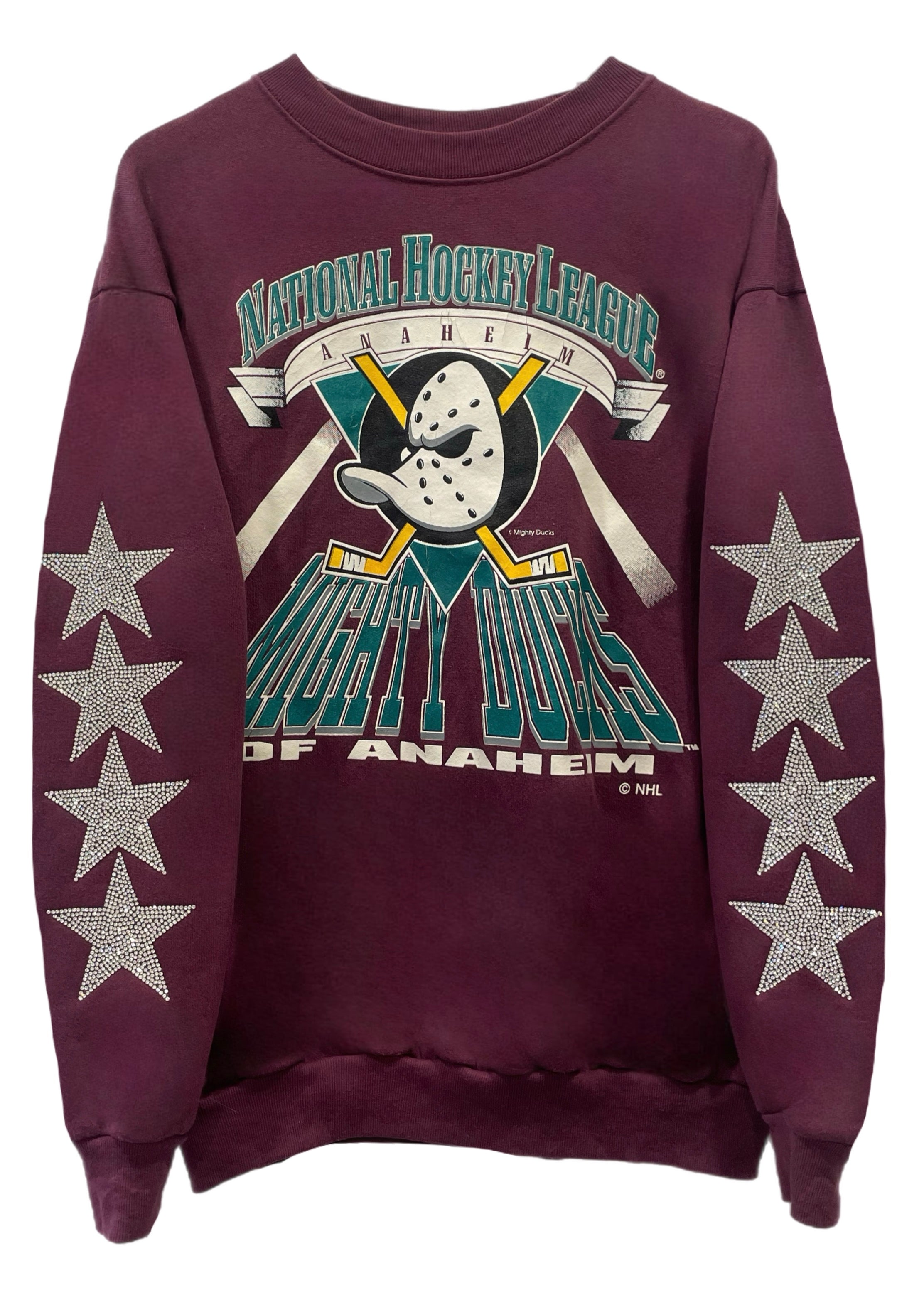 Anaheim Ducks, Hockey One of a KIND Vintage “Mighty Ducks” Sweatshirt with Four Crystal Star Design