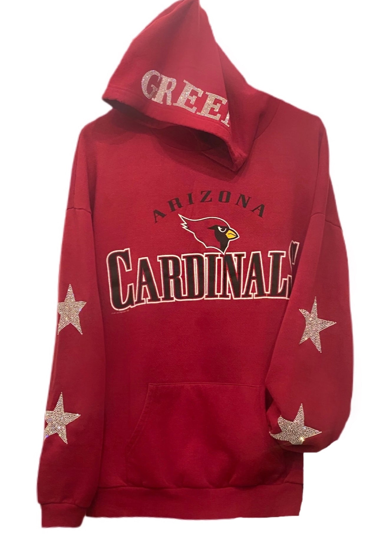 Arizona Cardinals, Football One of a KIND Vintage Hoodie with Crystal Star Design with Custom Crystal Name on the Hood