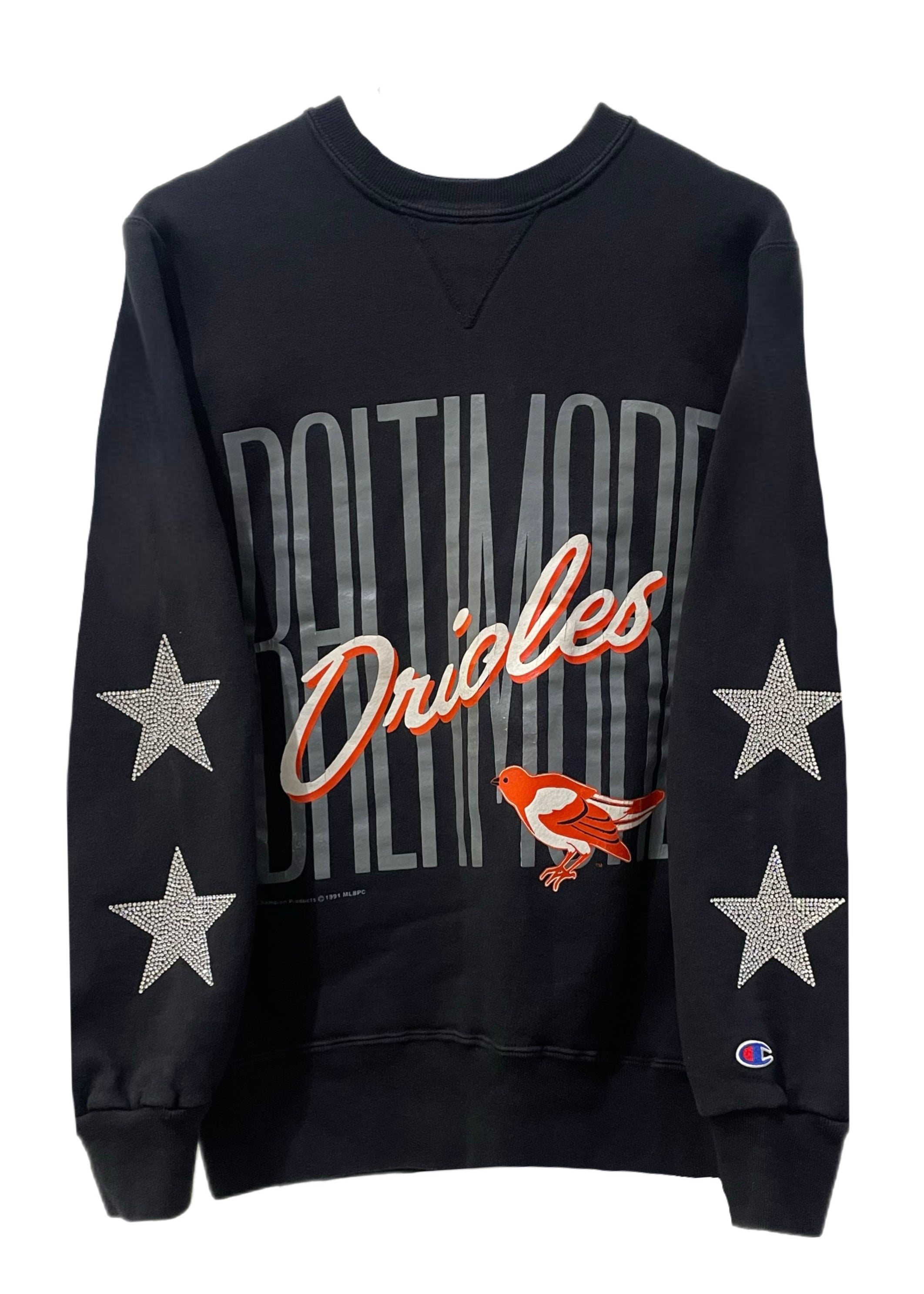 Baltimore Orioles, Baseball One of a KIND Vintage Sweatshirt with Crystal Star Design