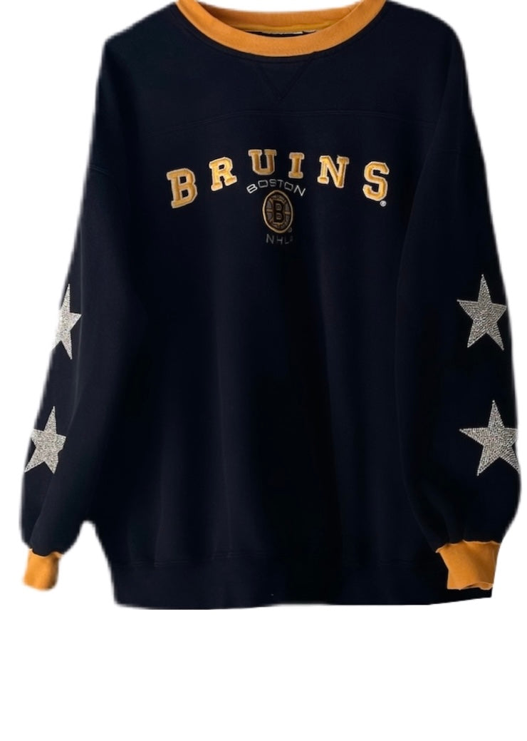 Boston Bruins, Hockey One of a KIND Vintage Sweatshirt with Crystal Stars Design