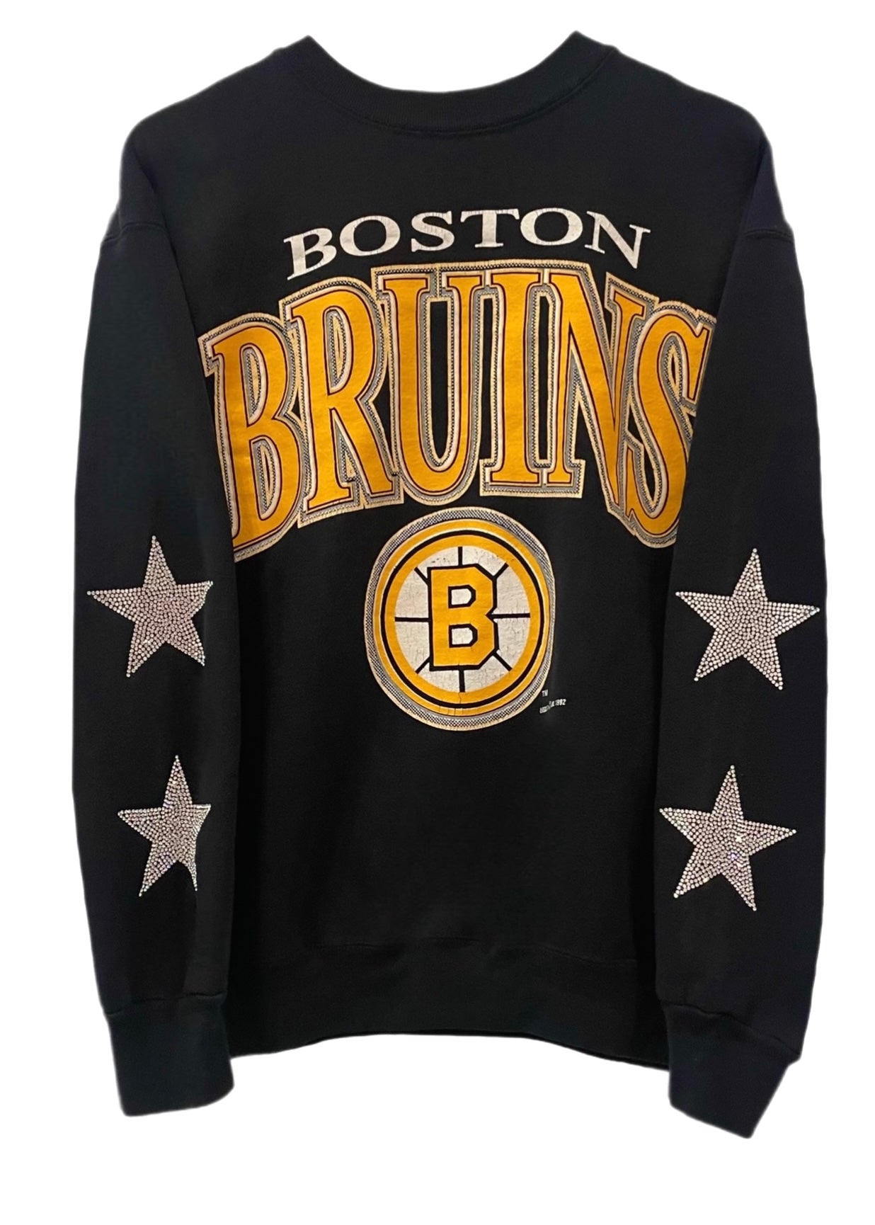 Boston Bruins, Hockey One of a KIND Vintage Sweatshirt with Crystal Stars Design