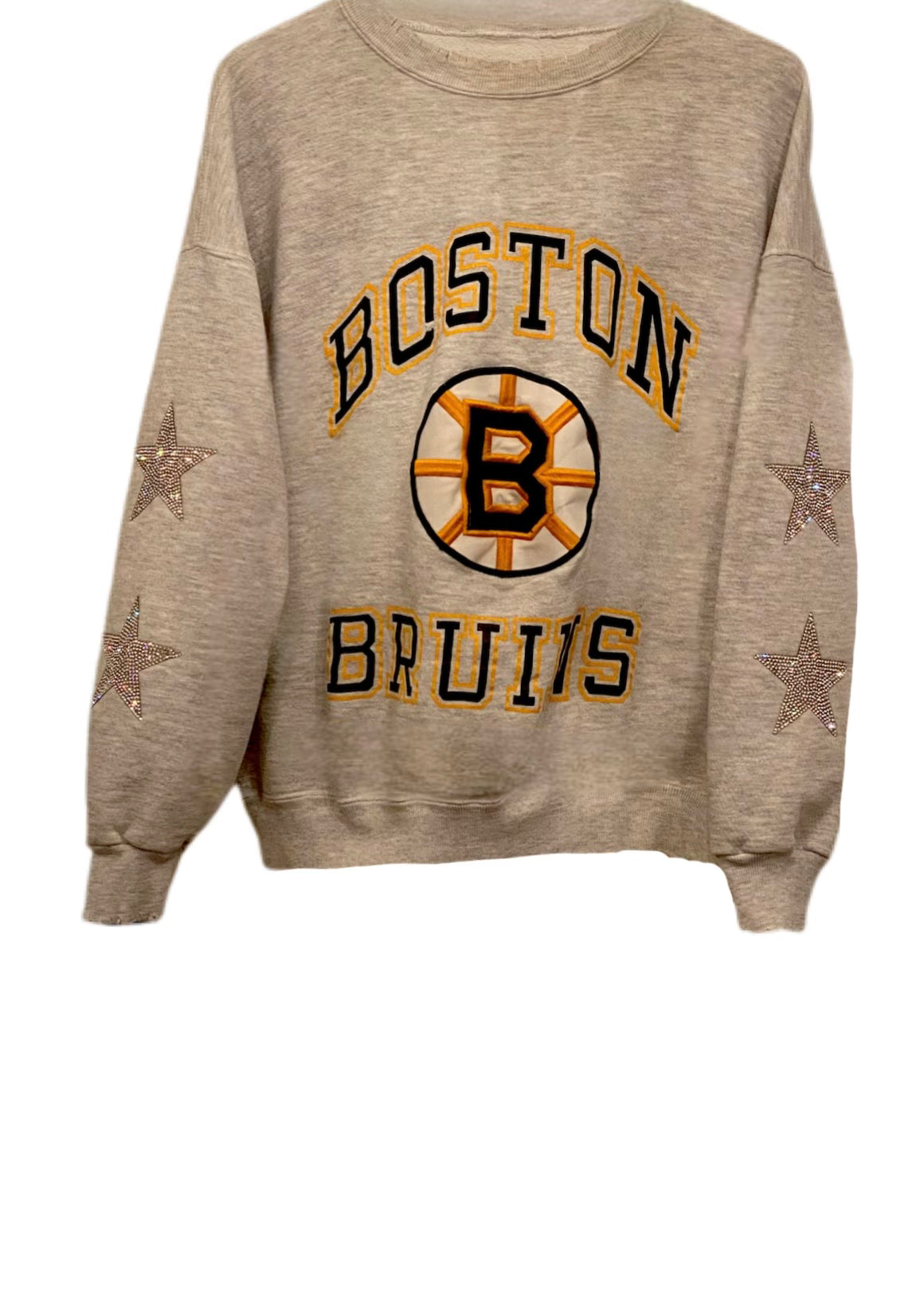 Boston Bruins, Hockey One of a KIND Vintage Sweatshirt with Crystal Stars Design