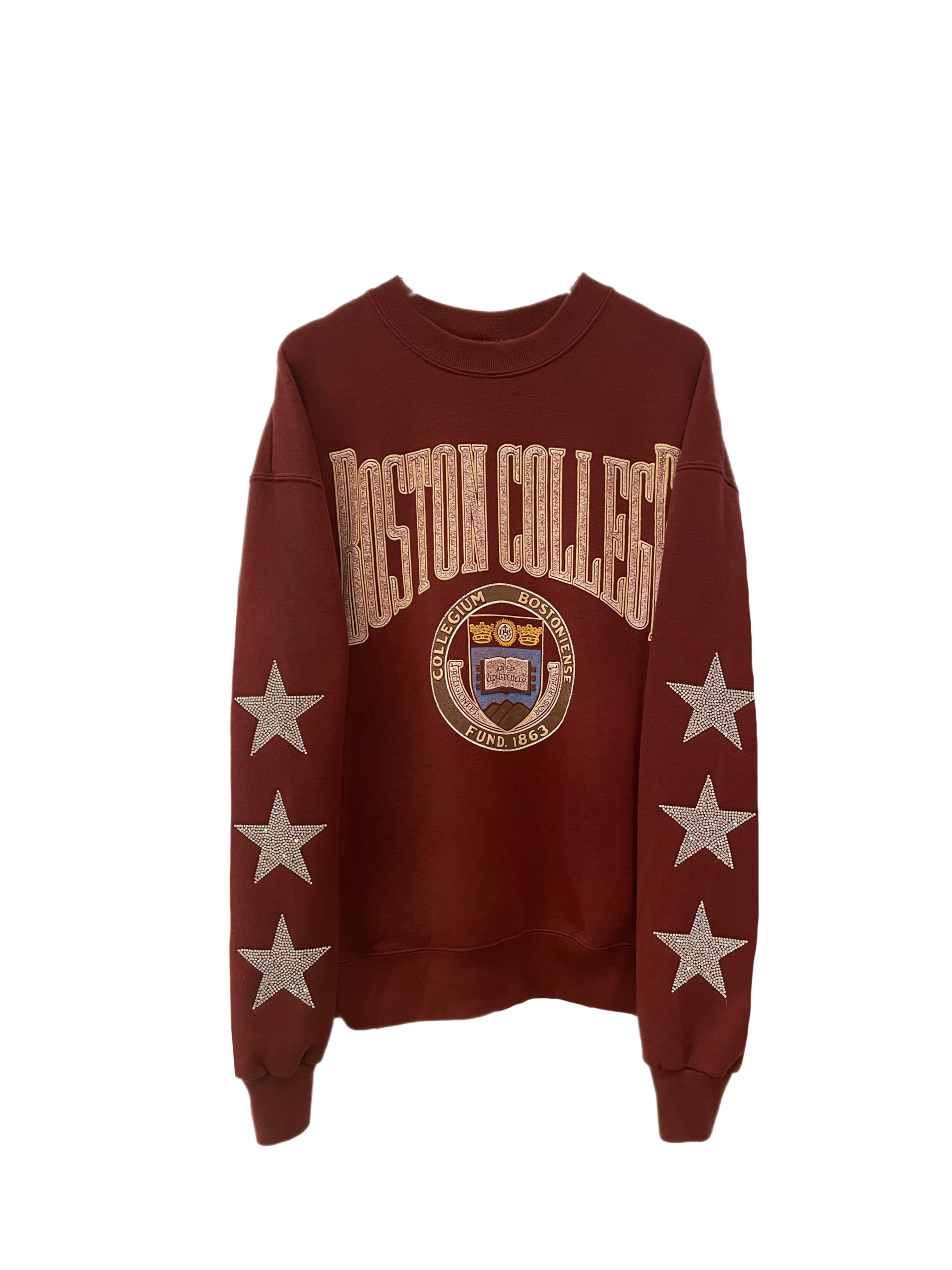 Boston College, BC One of a KIND Vintage Sweatshirt with Three Crystal Star Design.