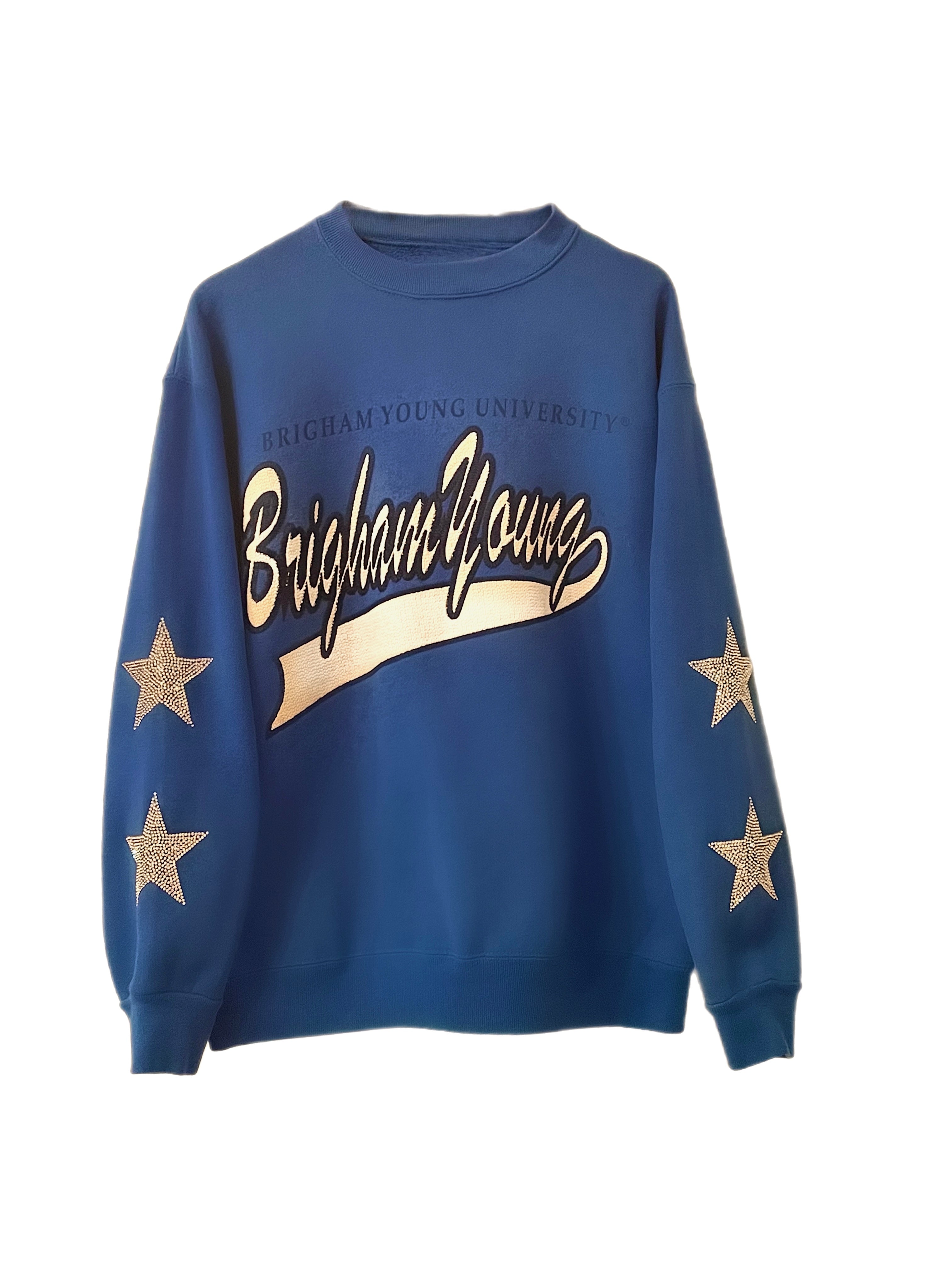 Brigham Young University, One of a KIND Vintage BYU Cougars Sweatshirt with Crystal Star Design.