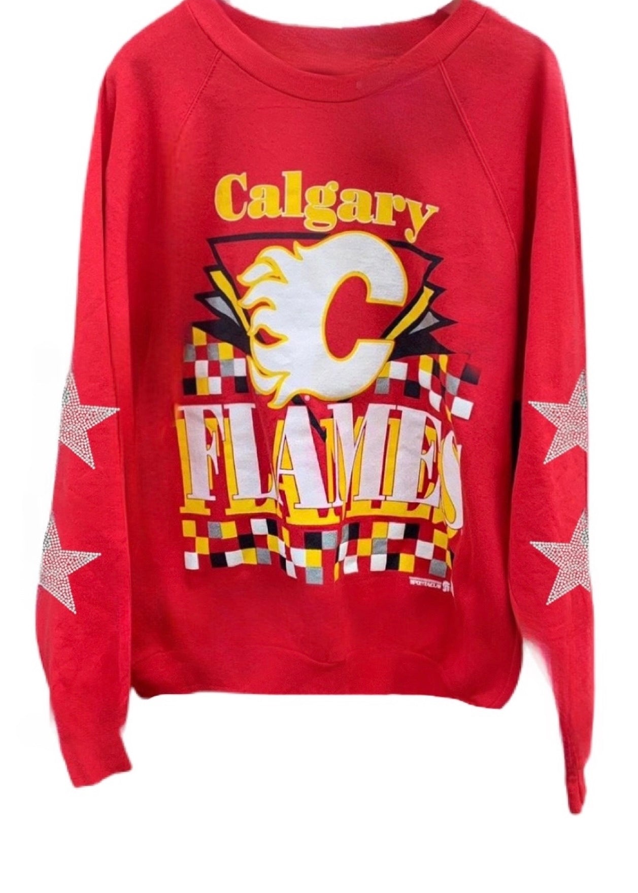 Calgary Flames, Hockey “Rare Find” One of a KIND Vintage Sweatshirt with Crystal Star Design