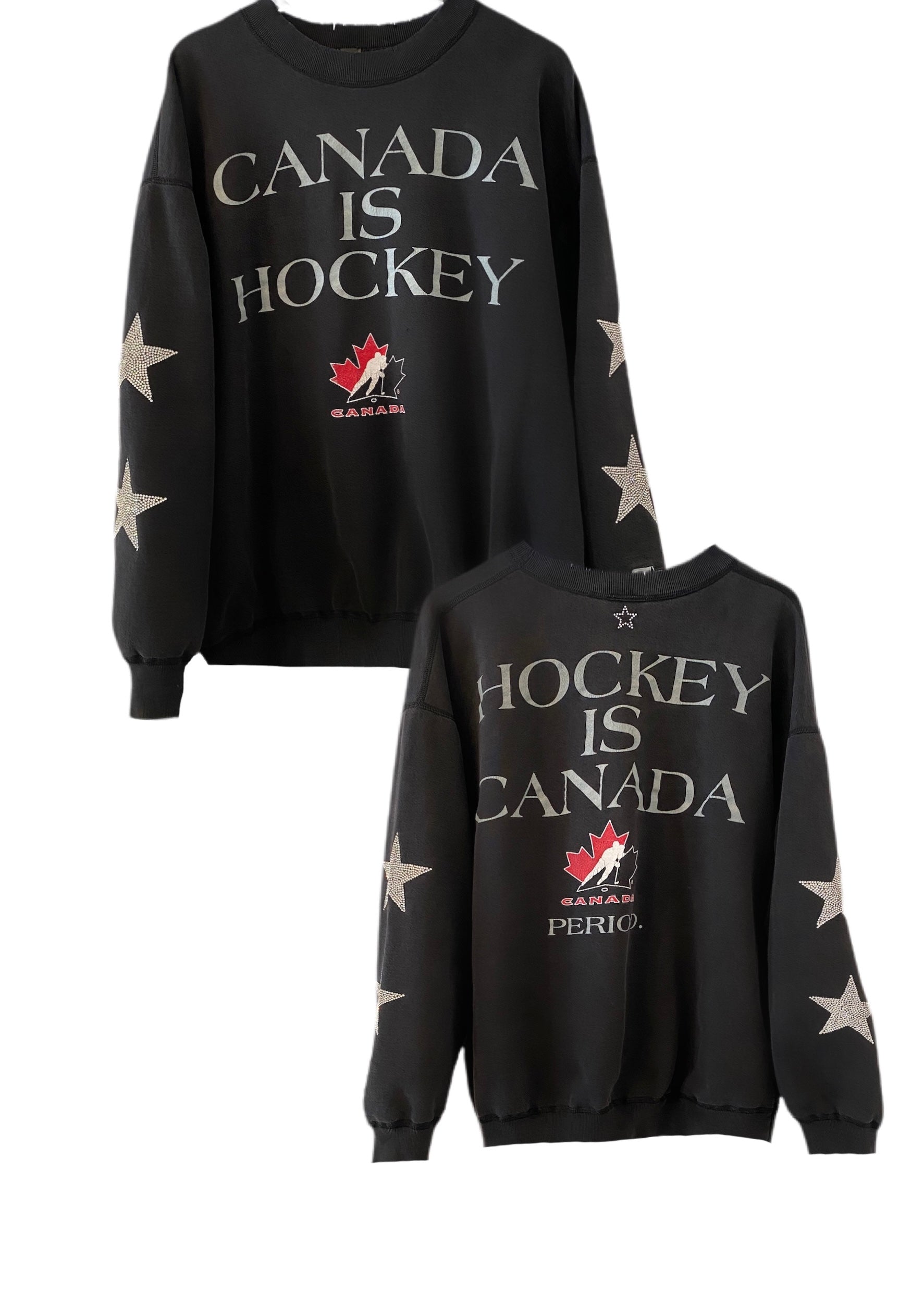 Canada is Hockey, One of a KIND Vintage Sweatshirt with Crystal Star Design