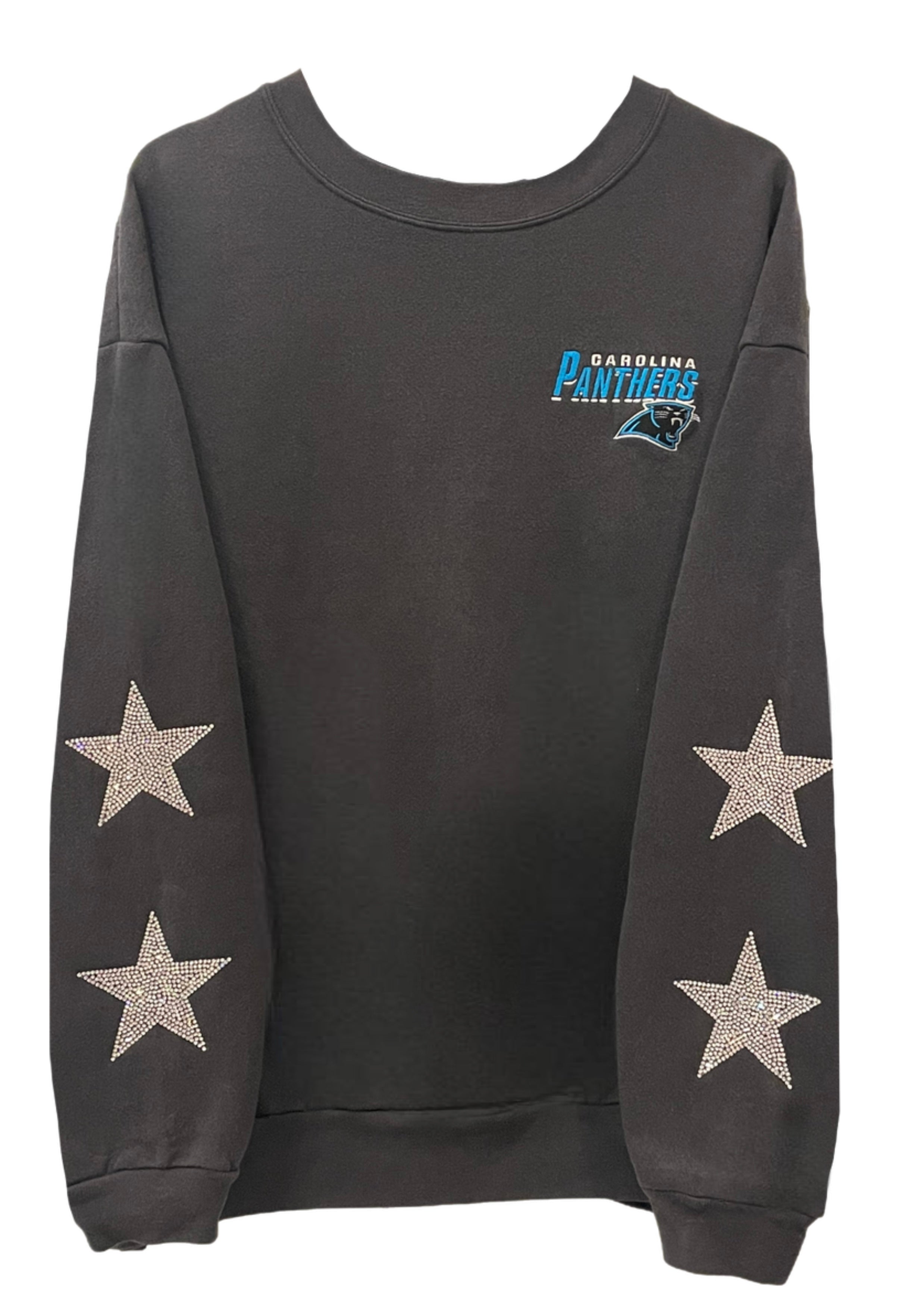 Carolina Panthers, Football One of a KIND Vintage Sweatshirt with Crystal Star Design