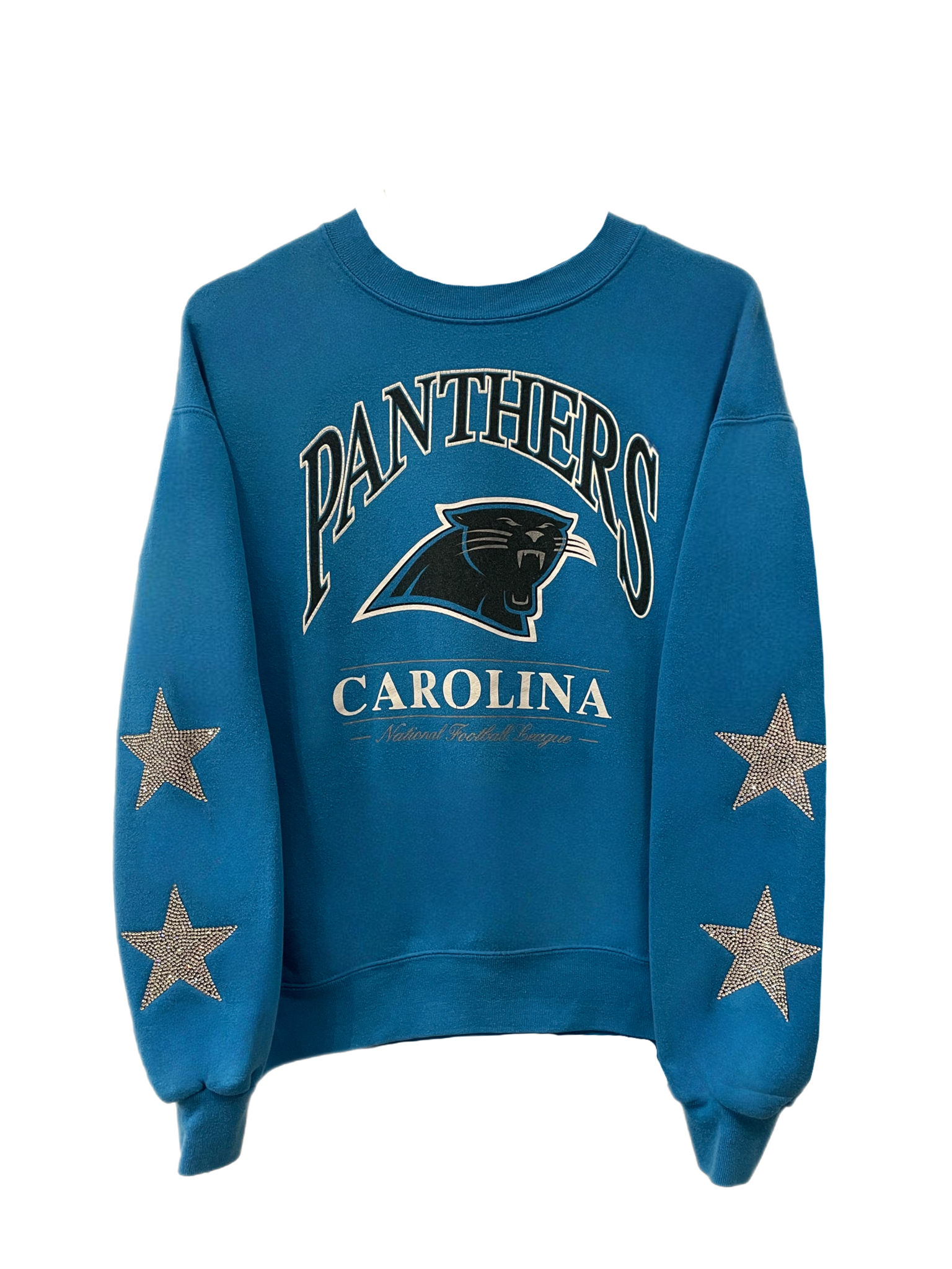 Carolina Panthers, Football One of a KIND Vintage Sweatshirt with Crystal Star Design
