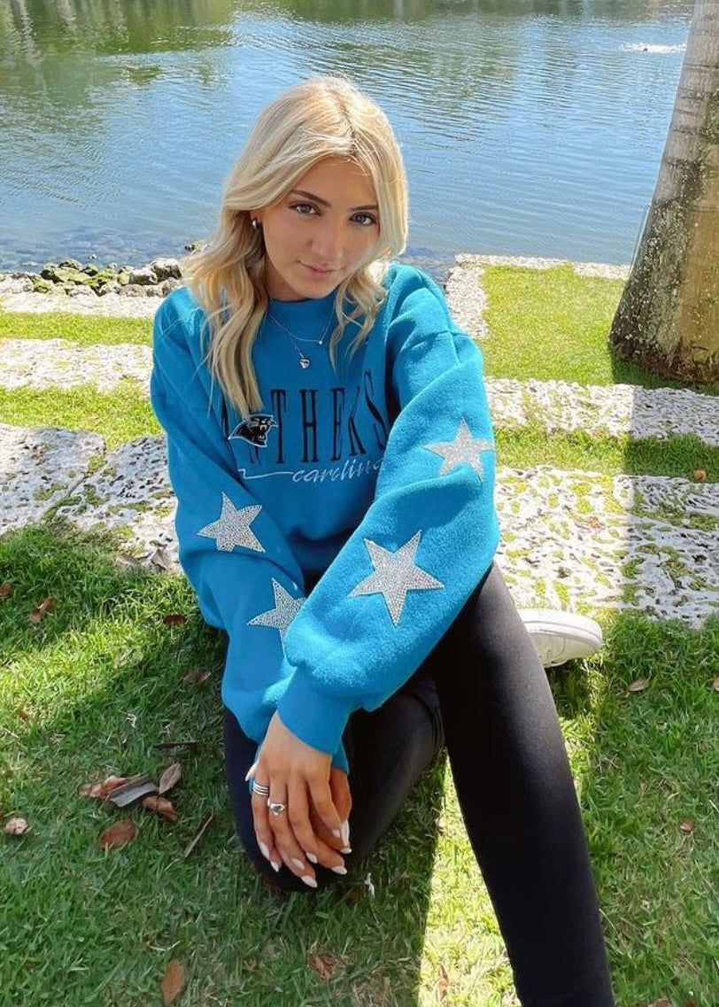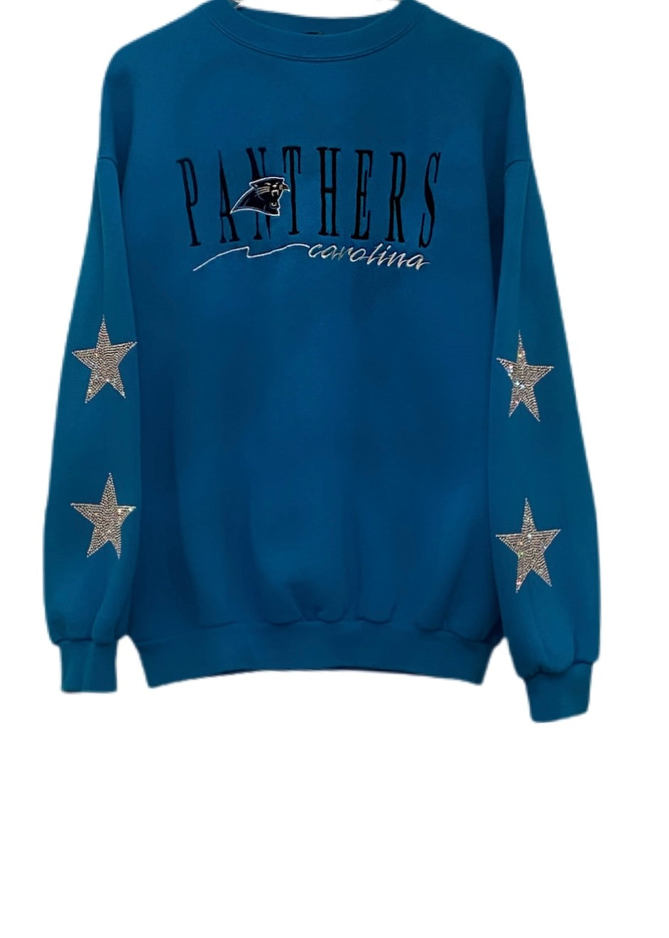 Carolina Panthers, Football One of a KIND Vintage Sweatshirt with Crystal Star Design
