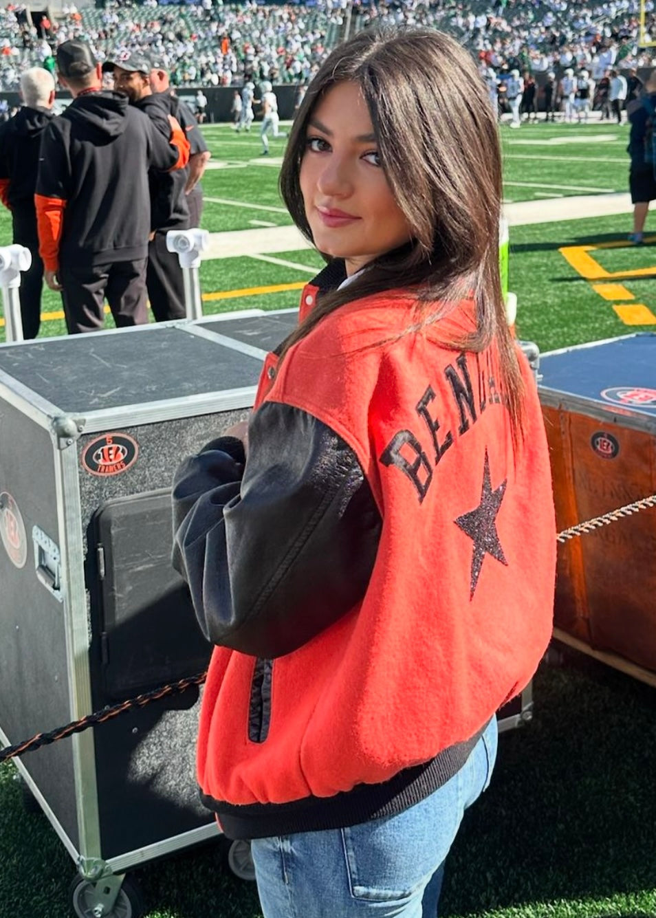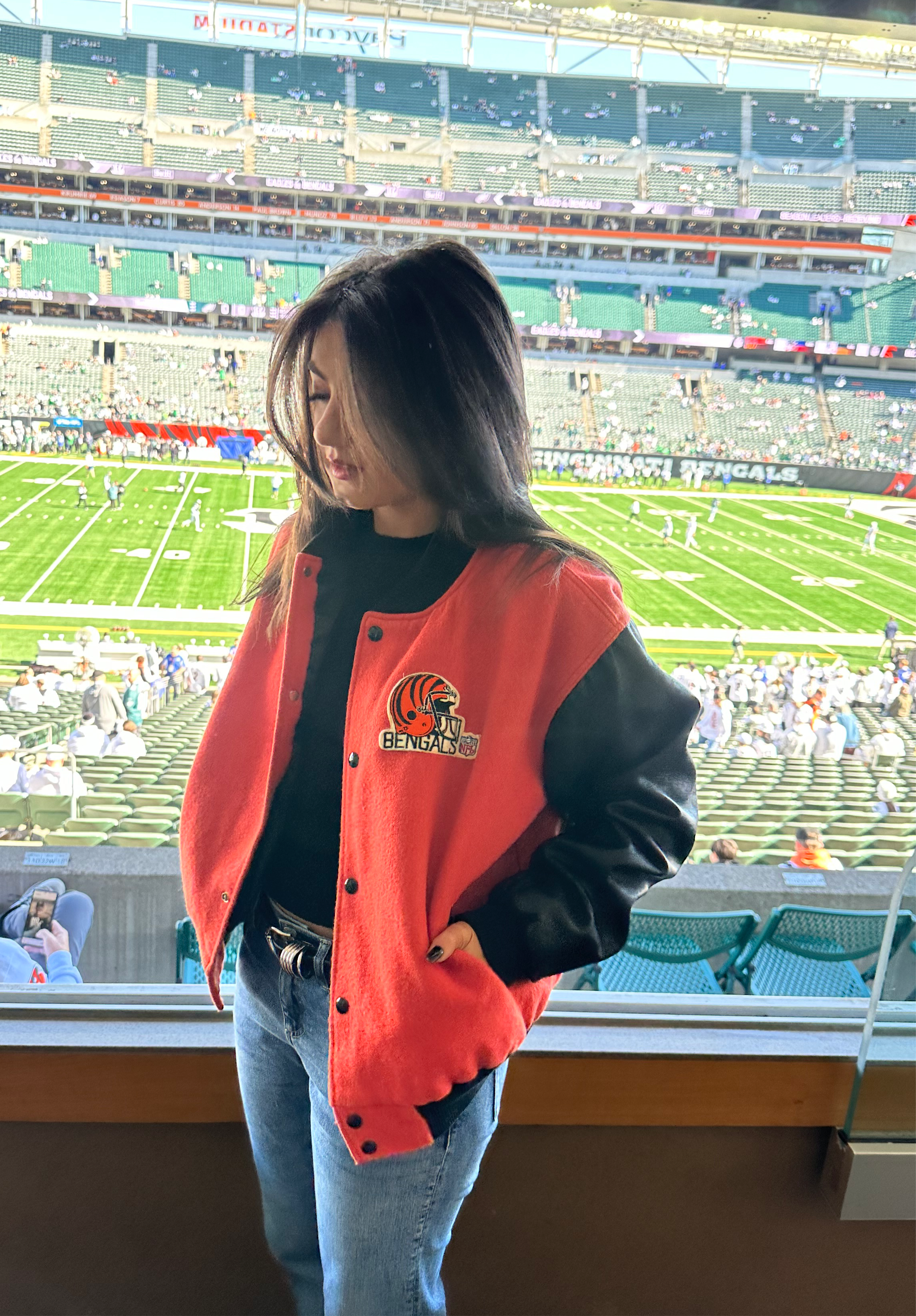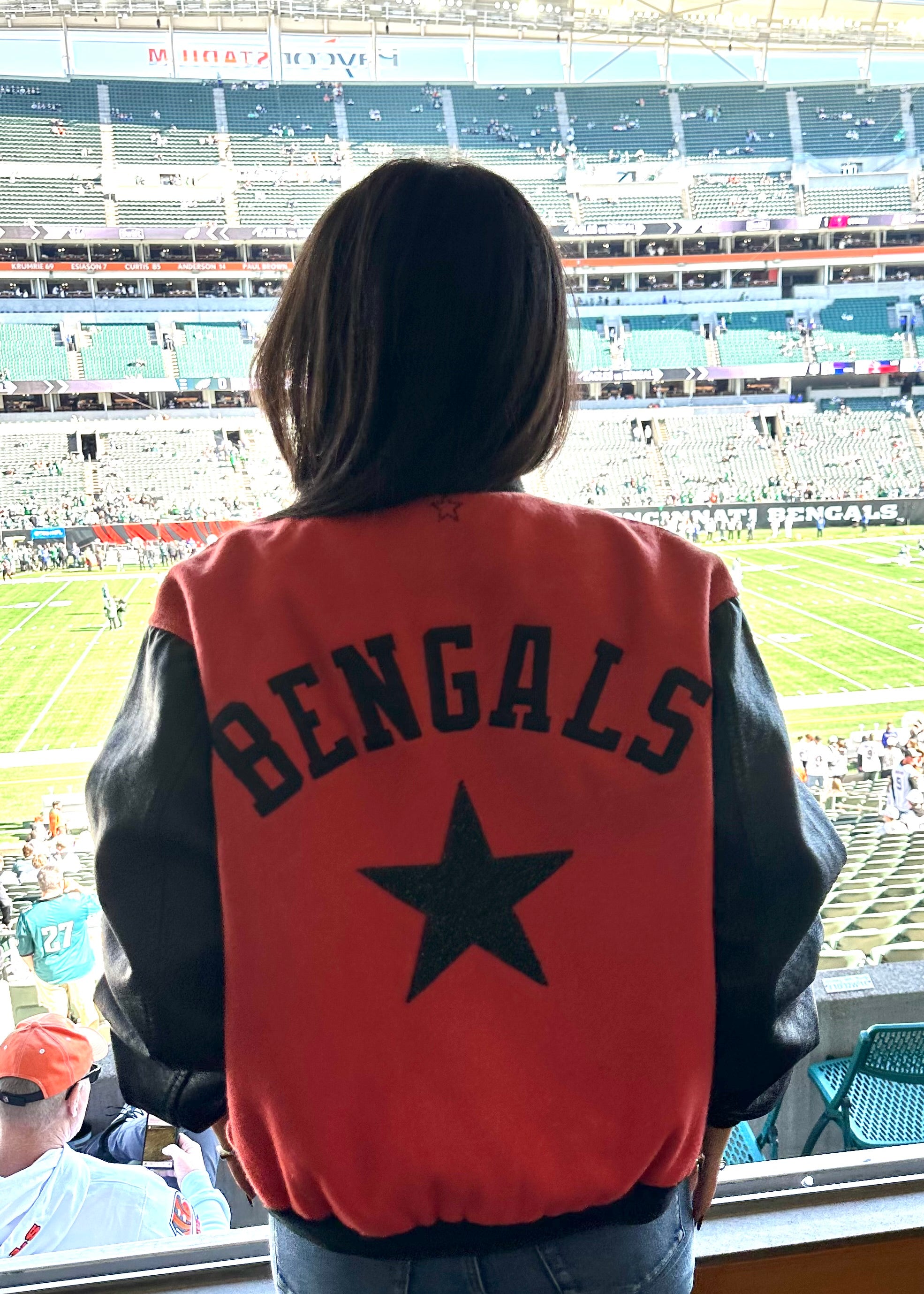 Cincinnati Bengals, Football One of a KIND “Rare Find Collectors Piece,” Vintage Jacket with Large Black Crystal Star - Oversized depending on the person