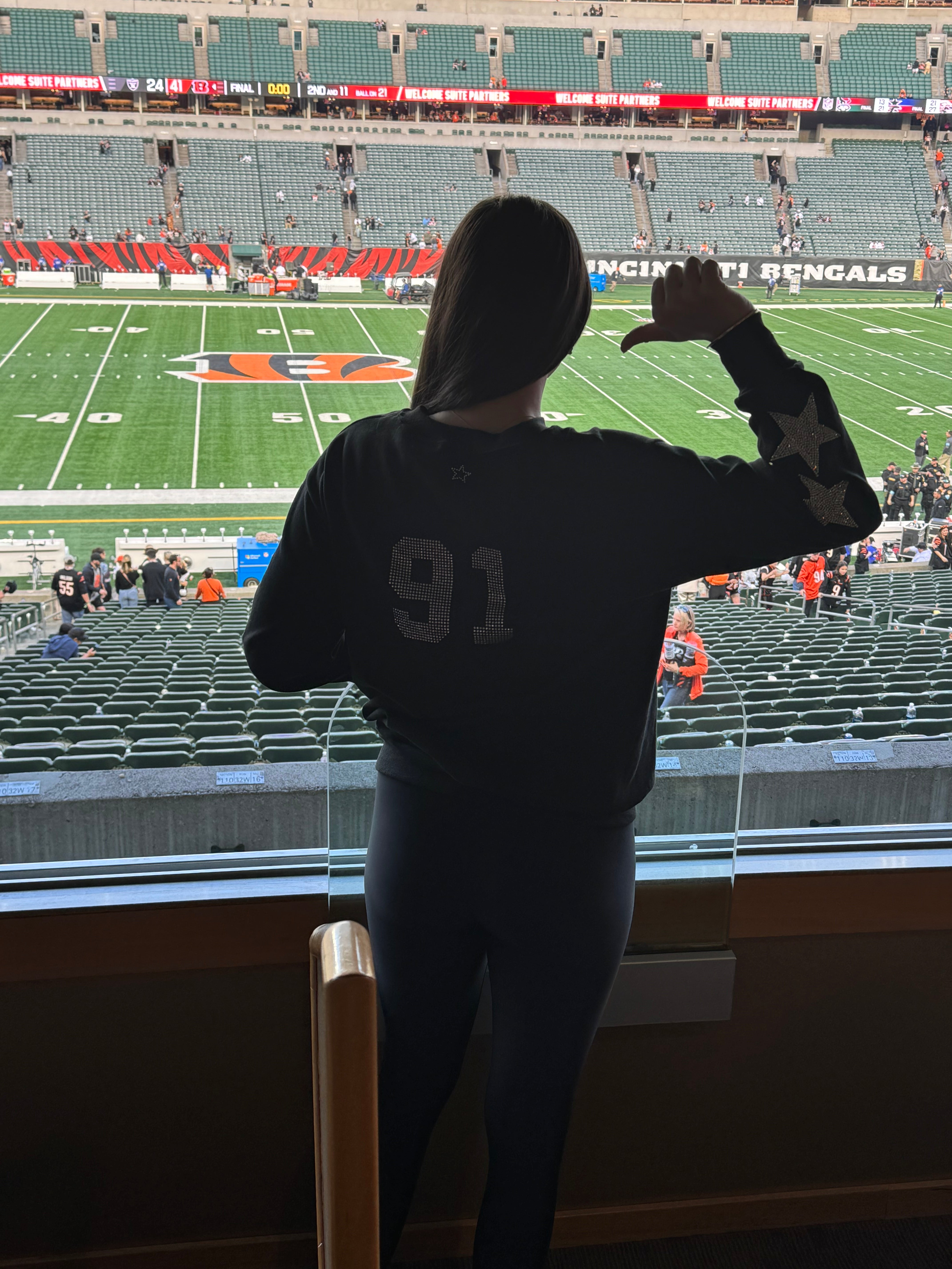Cincinnati Bengals, Football One of a KIND Sweatshirt with Crystal Star Design, Custom Crystal Number