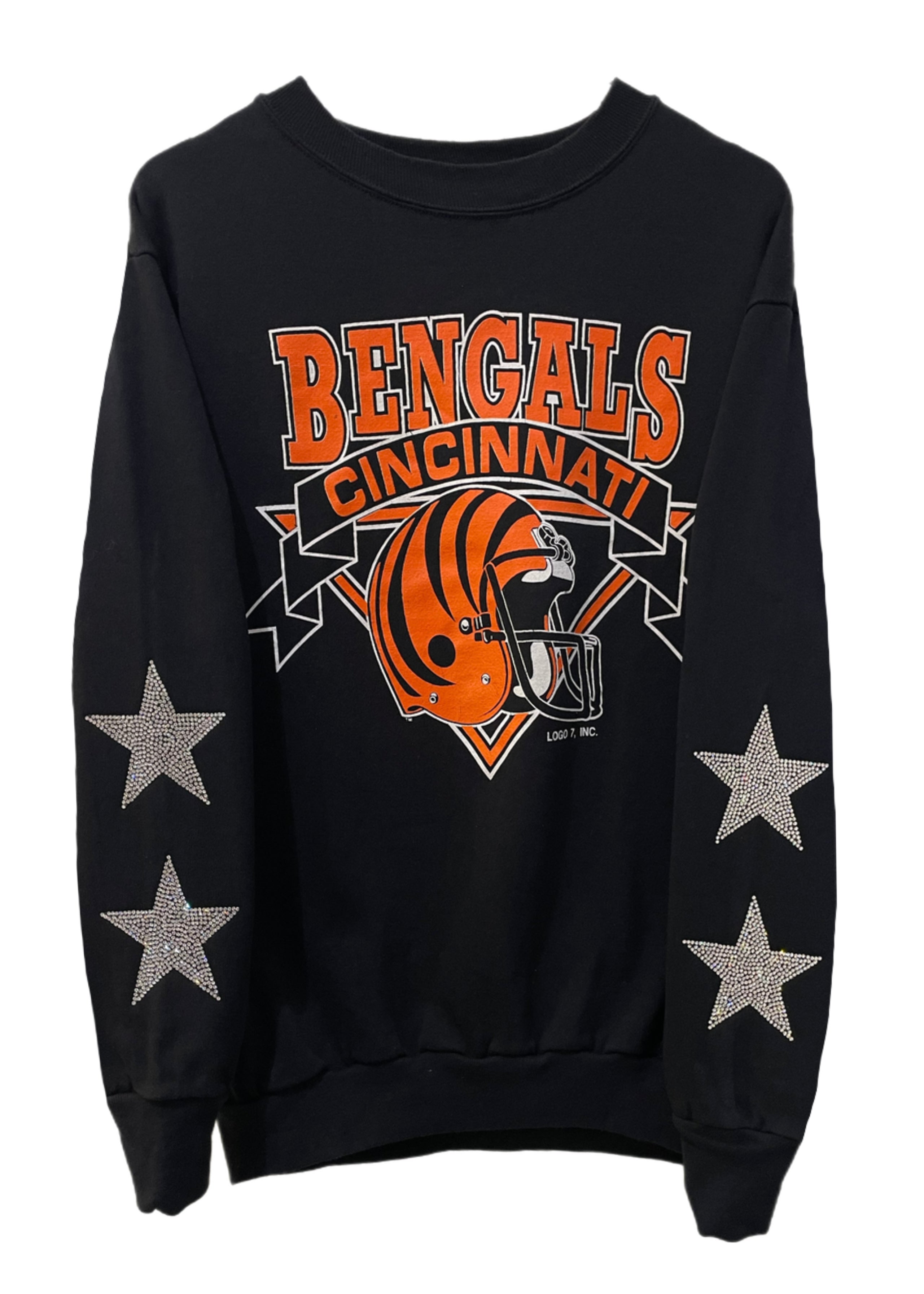 Cincinnati Bengals, Football One of a KIND Vintage Sweatshirt with Crystal Star Design, Custom Crystal Number
