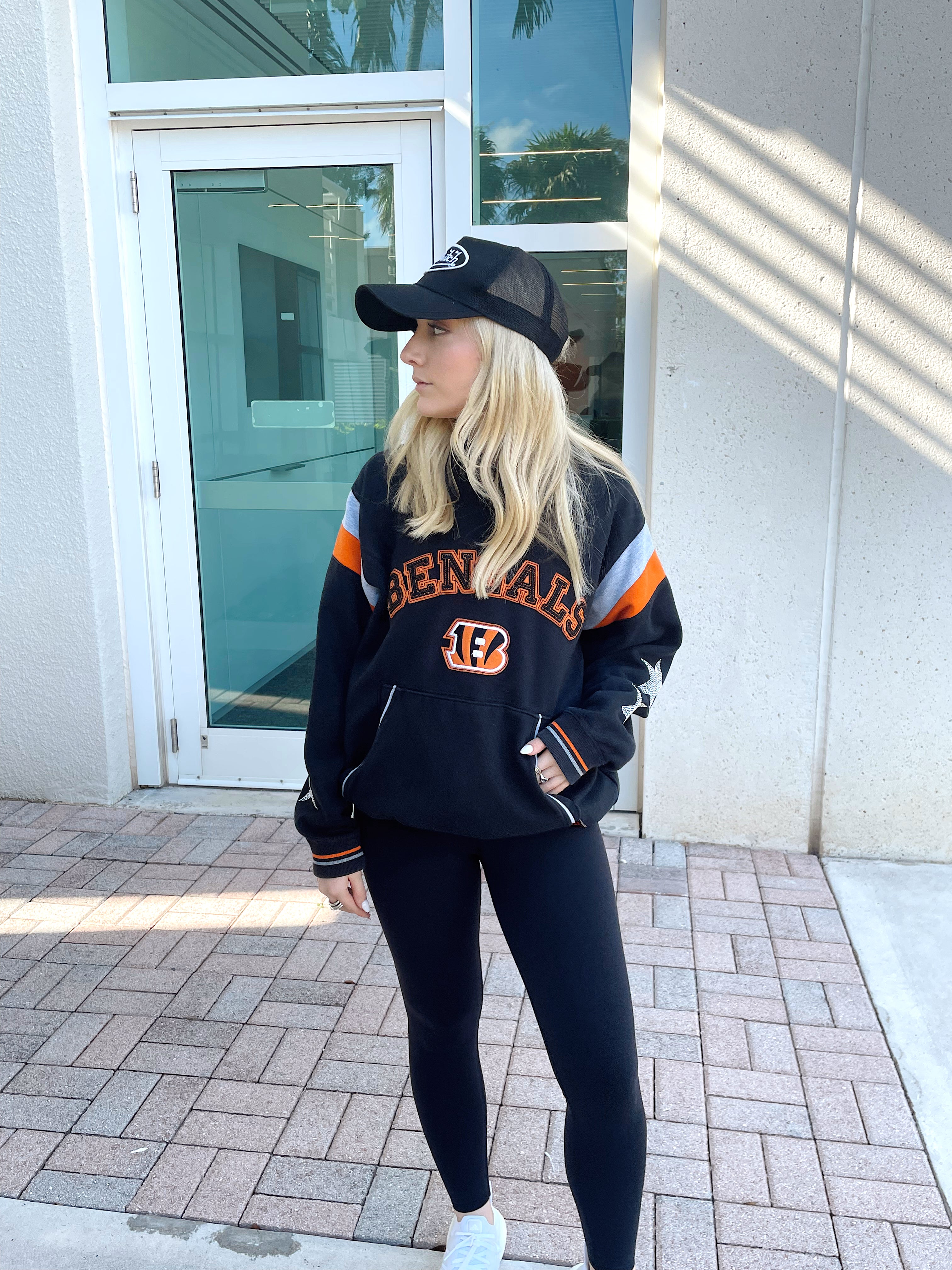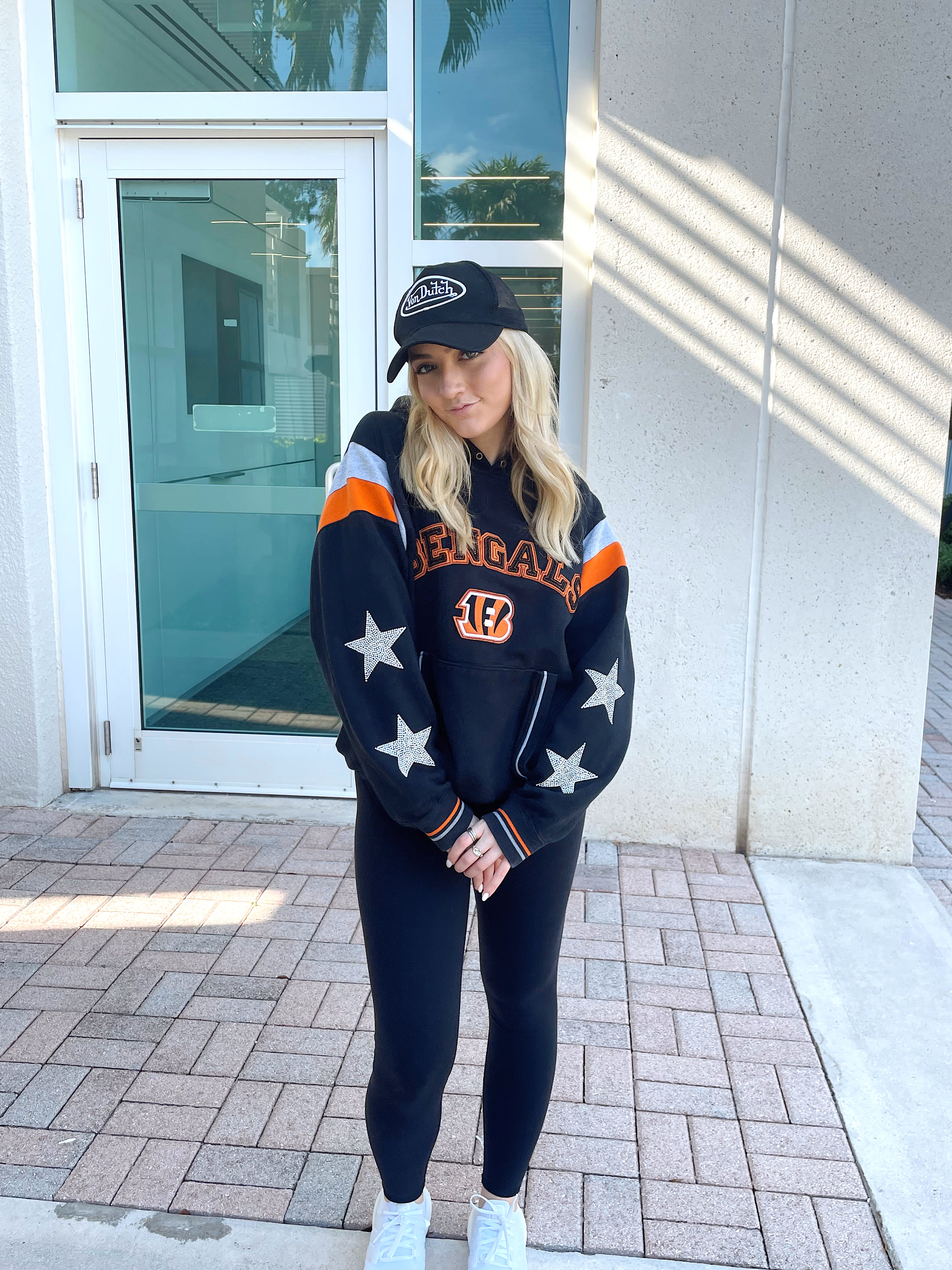 Cincinnati Bengals, Football One of a KIND Vintage Hoodie with Crystal Star Design