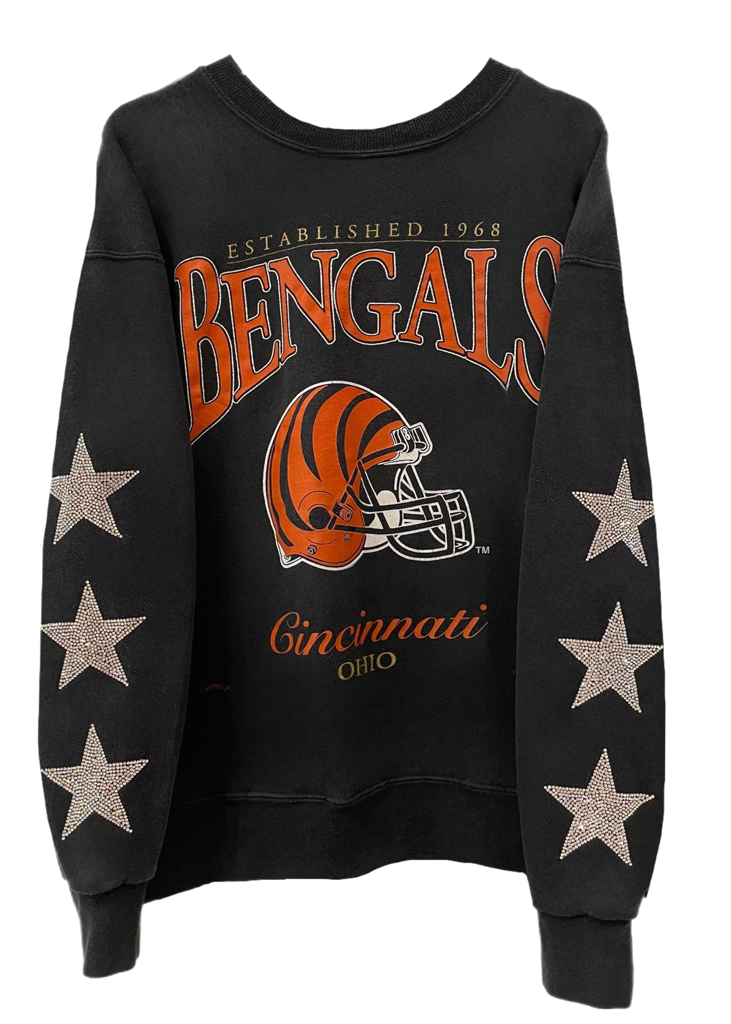 Cincinnati Bengals, Football One of a KIND Vintage Sweatshirt with Three Crystal Star Design