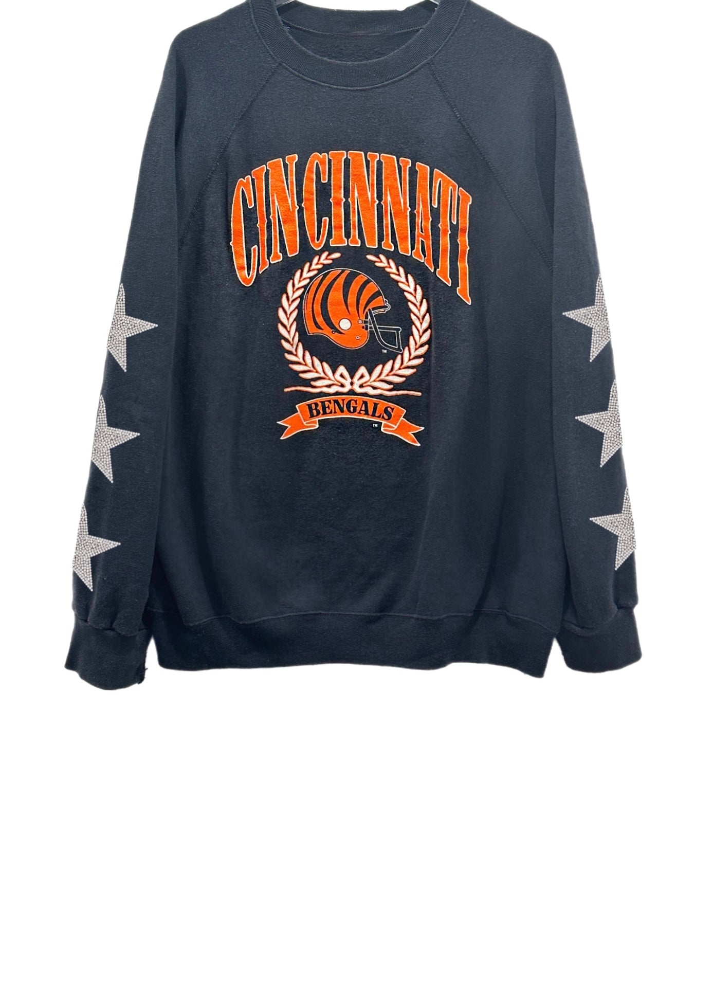Cincinnati Bengals, Football One of a KIND Vintage Sweatshirt with Three Crystal Star Design