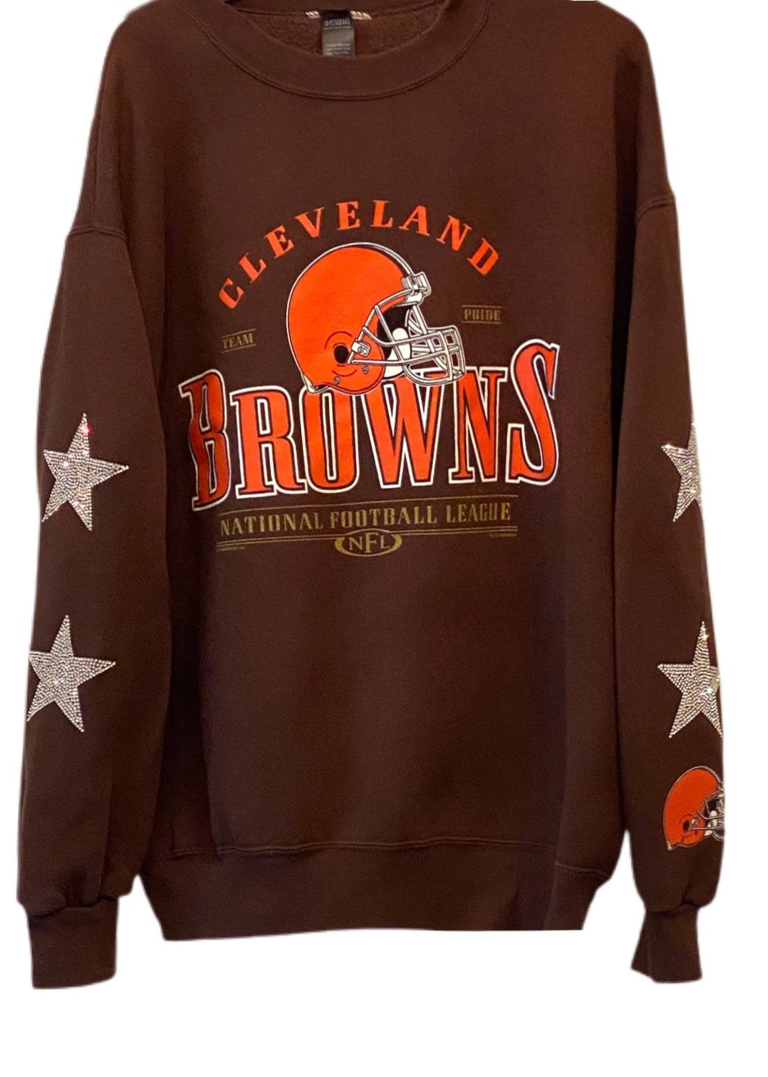 Cleveland Browns, Football One of a KIND Vintage Sweatshirt with Crystal Star Design