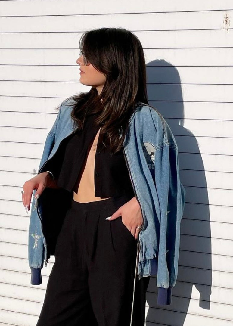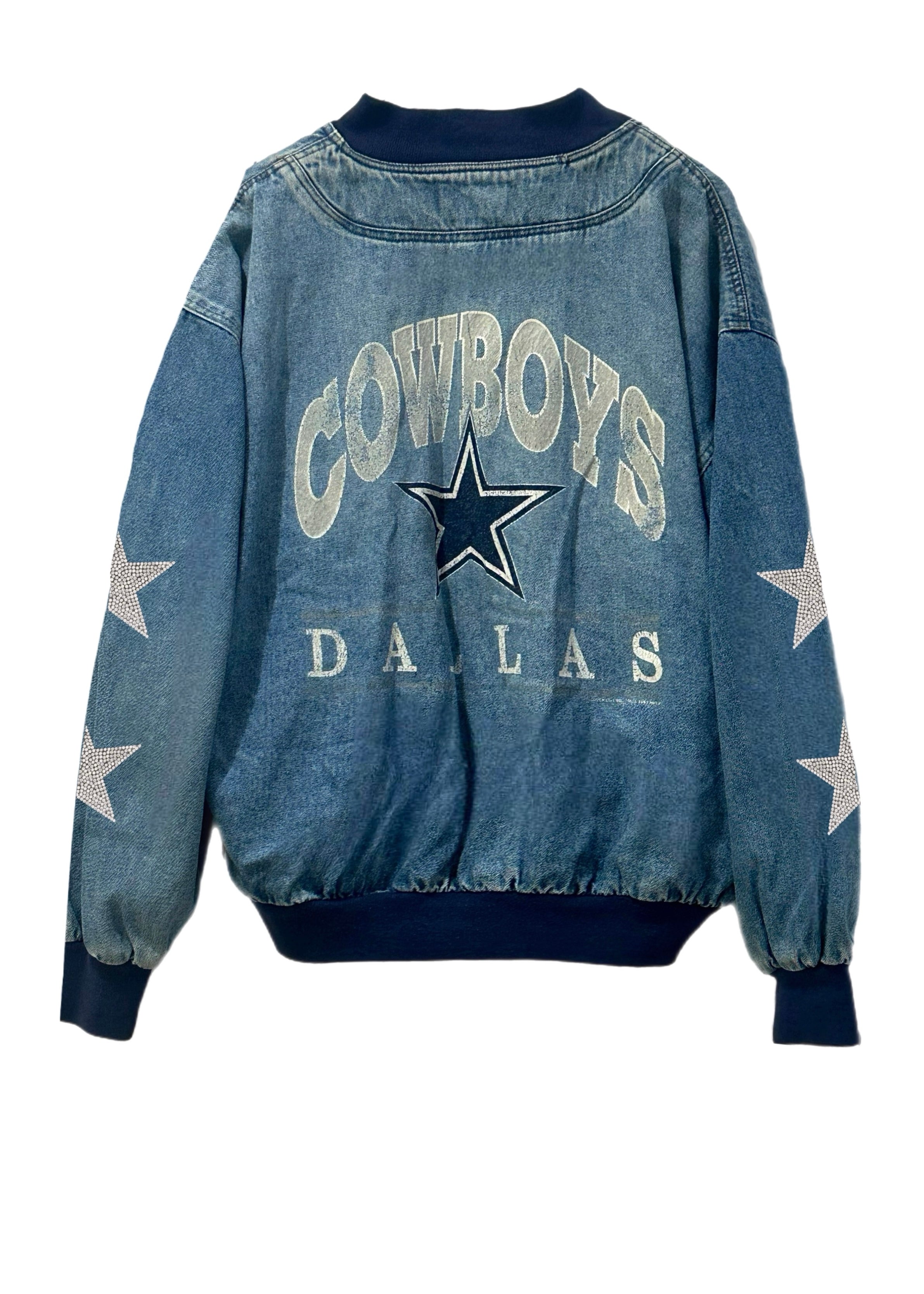 Dallas Cowboys, Football “Super Rare Fine” One of a KIND Vintage Denim Bomber Jacket with Crystal Star Design.