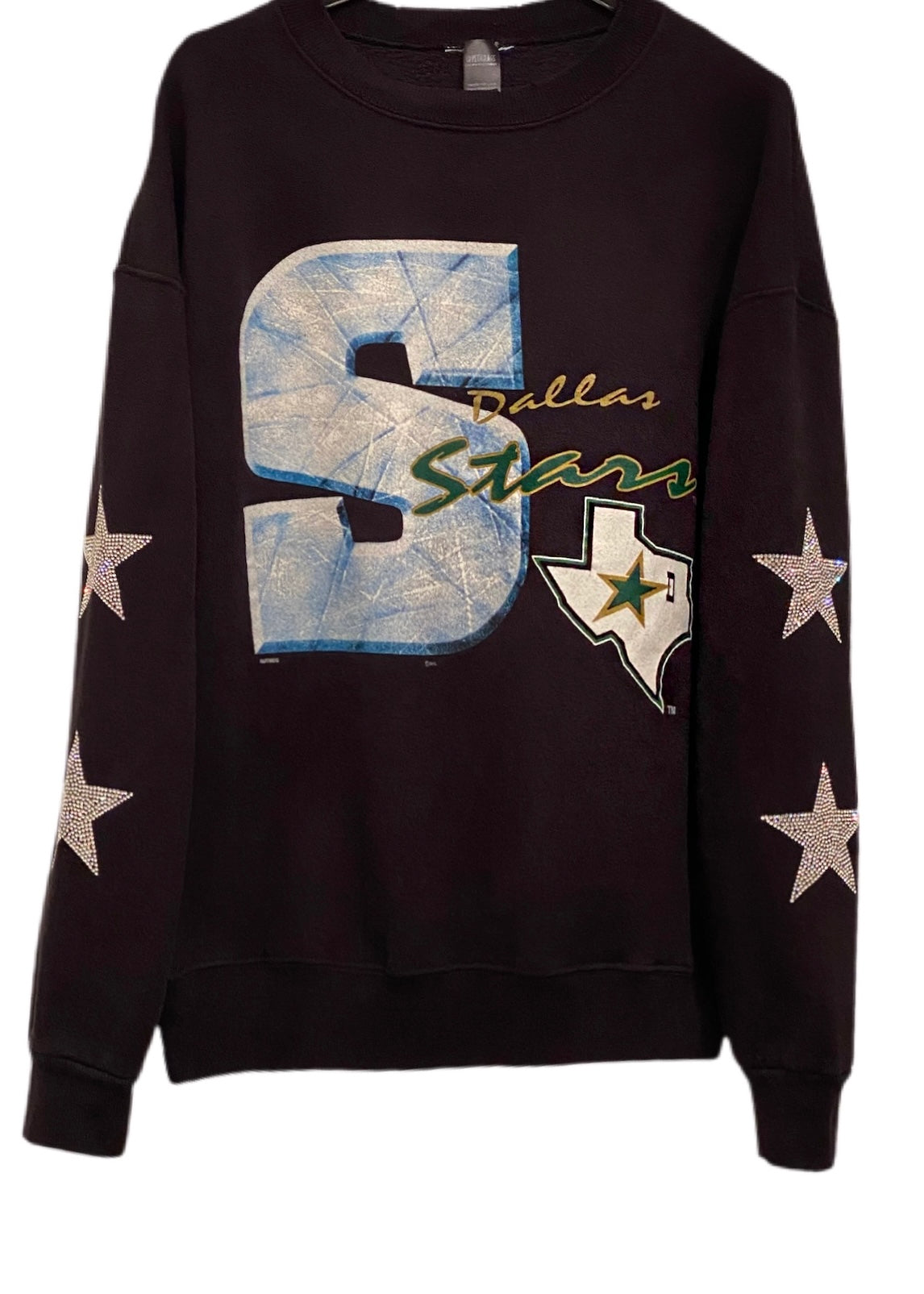 Dallas Stars, Hockey One of a KIND Vintage Sweatshirt with Crystal Stars Design