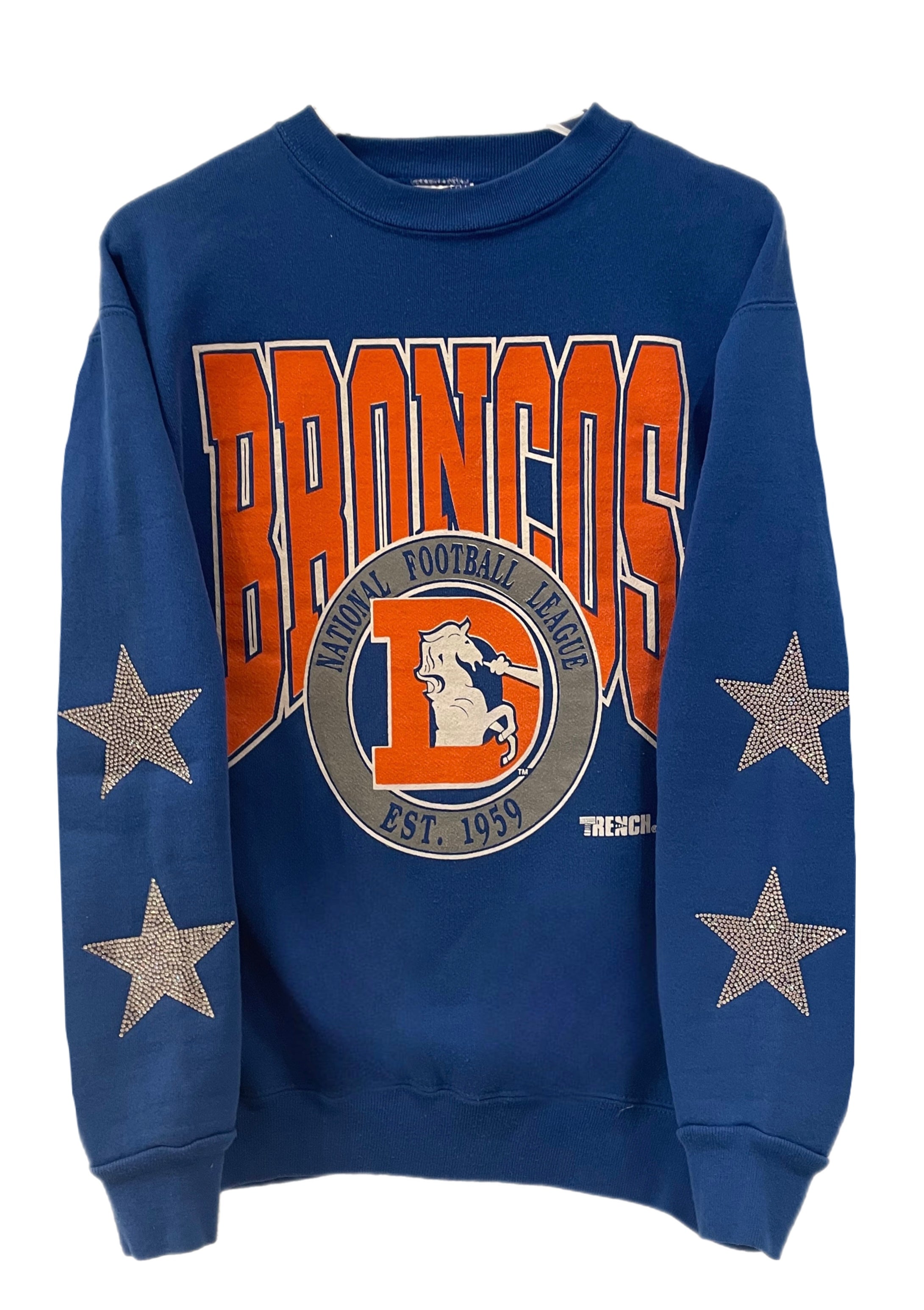 Denver Broncos, Football One of a KIND Vintage “Rare Find” Sweatshirt with Crystal Star Design