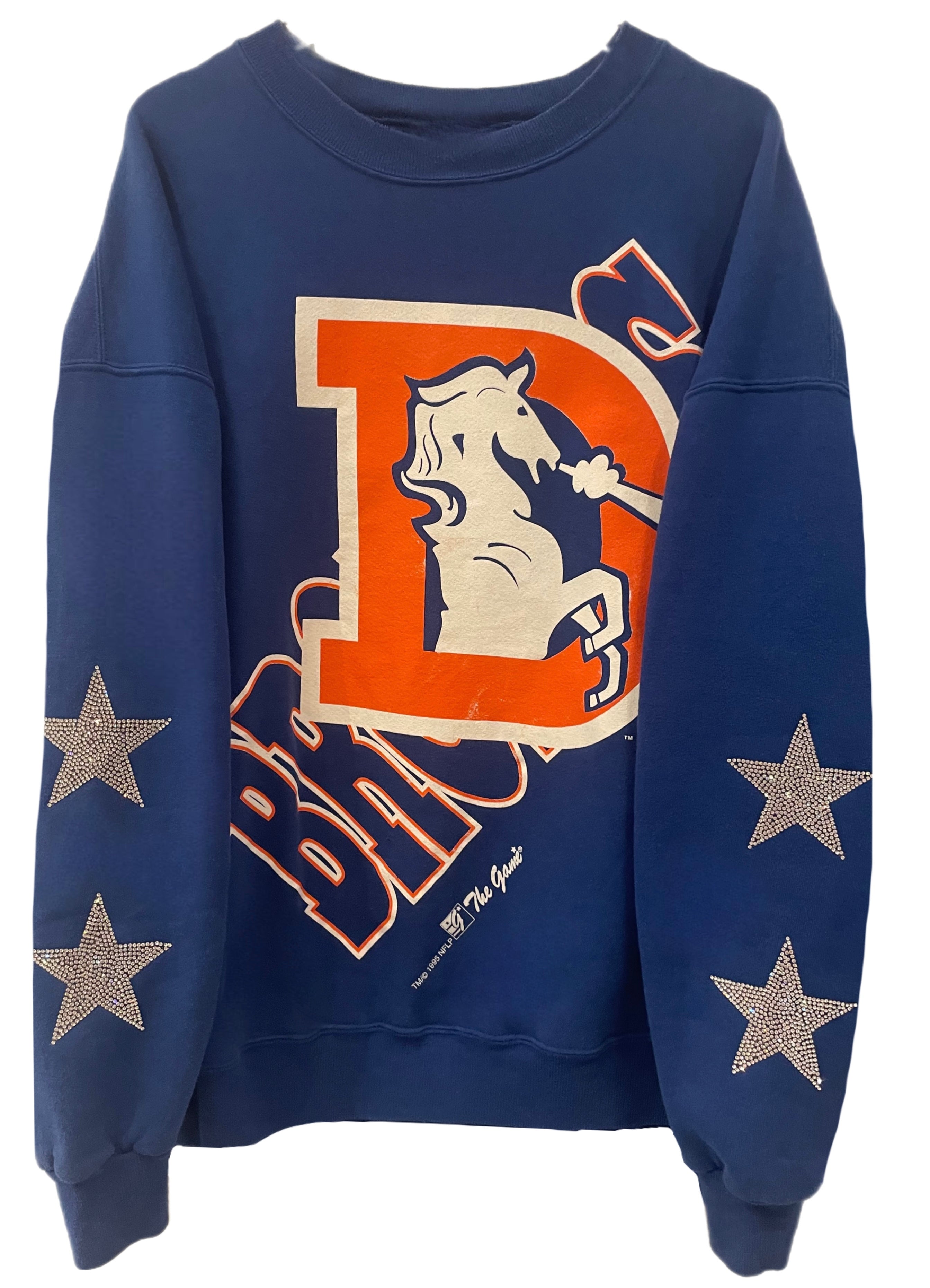 Denver Broncos, Football One of a KIND Vintage “Rare Find” Sweatshirt with Crystal Star Design