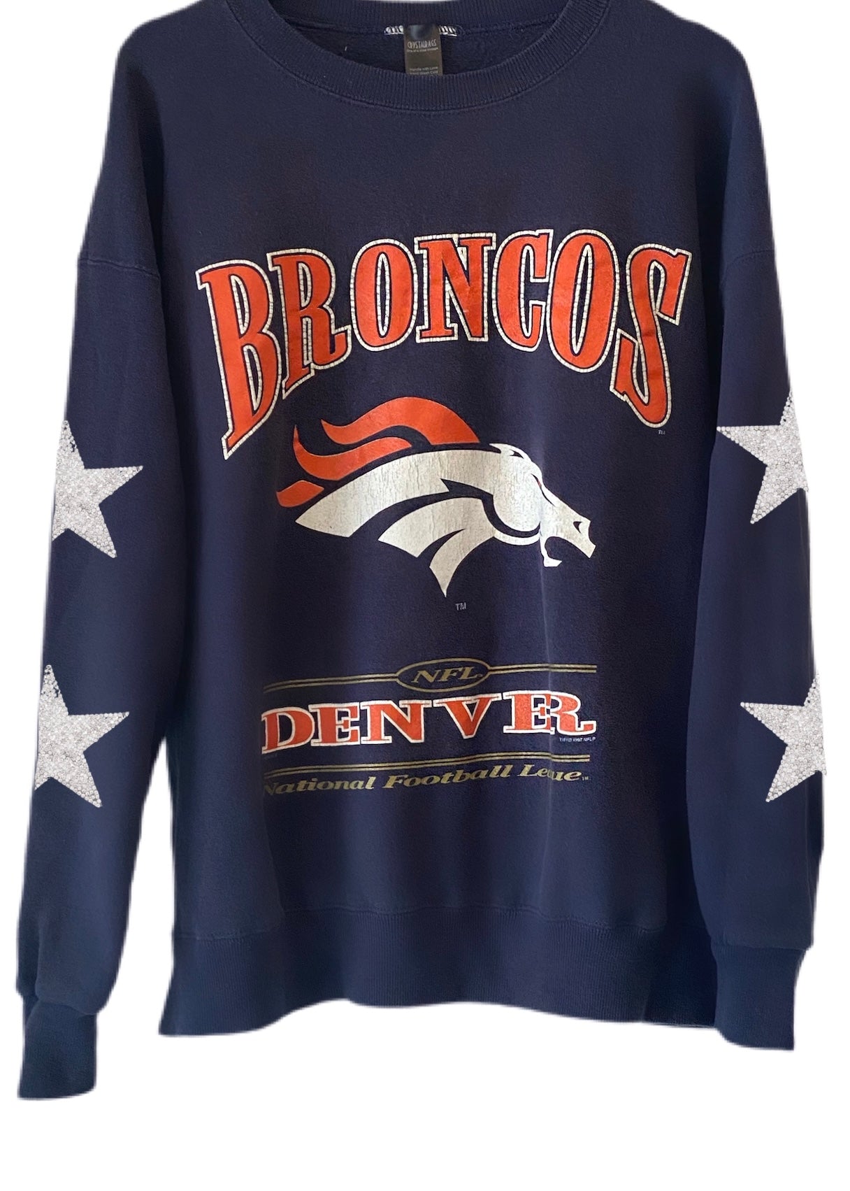 Denver Broncos, Football One of a KIND Vintage Sweatshirt with Crystal Star Design