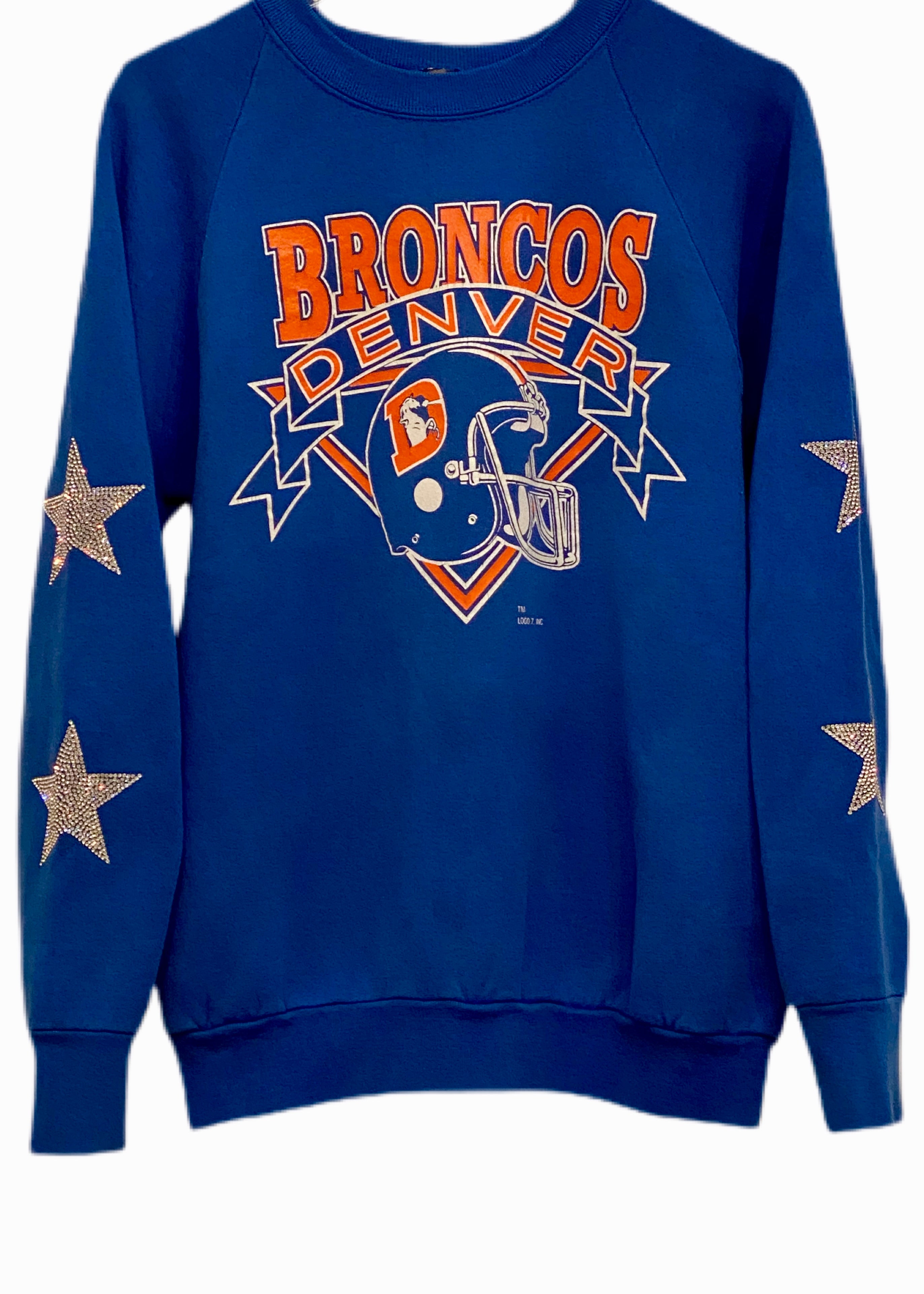 Denver Broncos, Football One of a KIND Vintage Sweatshirt with Crystal Star Design