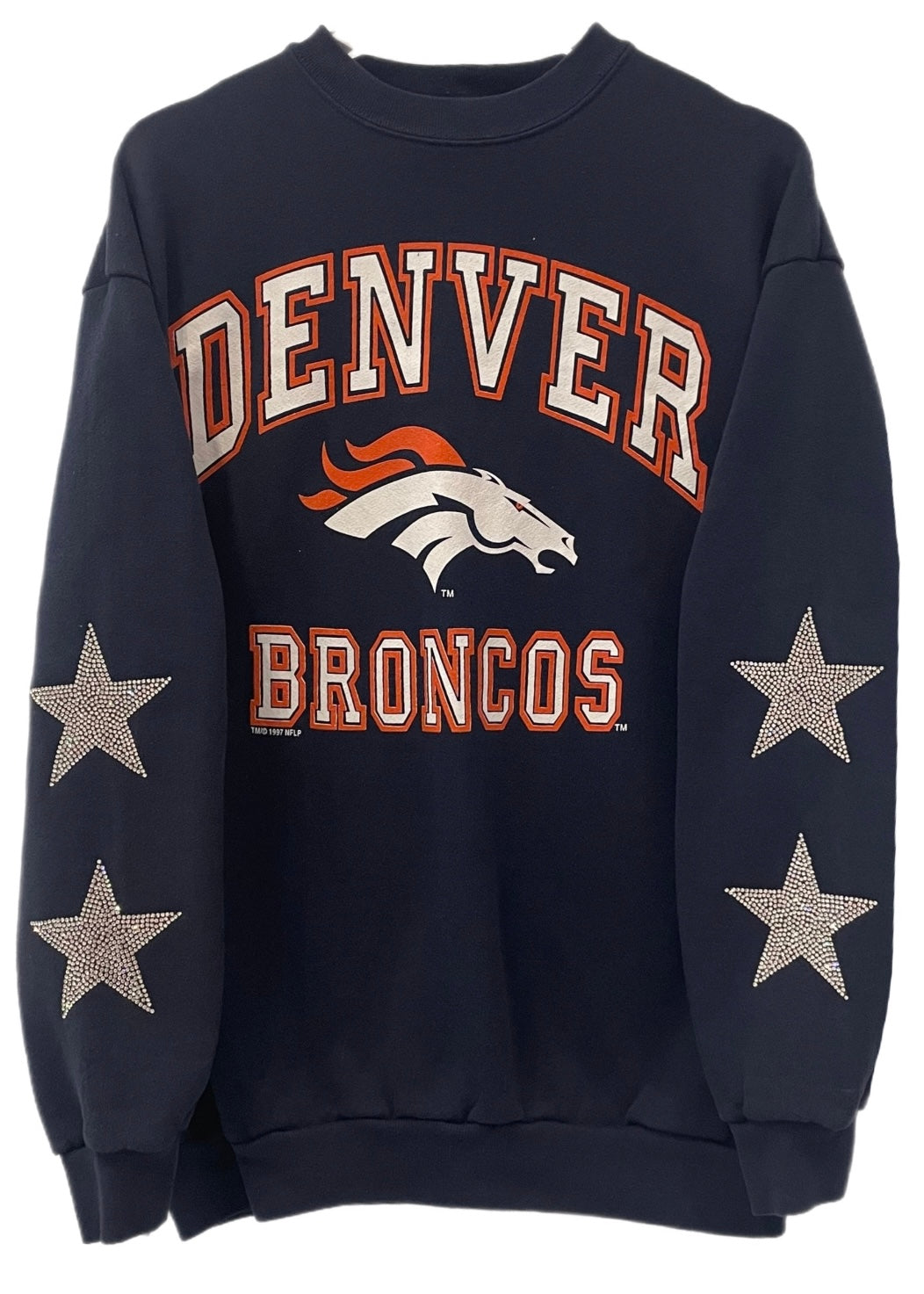 Denver Broncos, Football One of a KIND Vintage Sweatshirt with Crystal Star Design