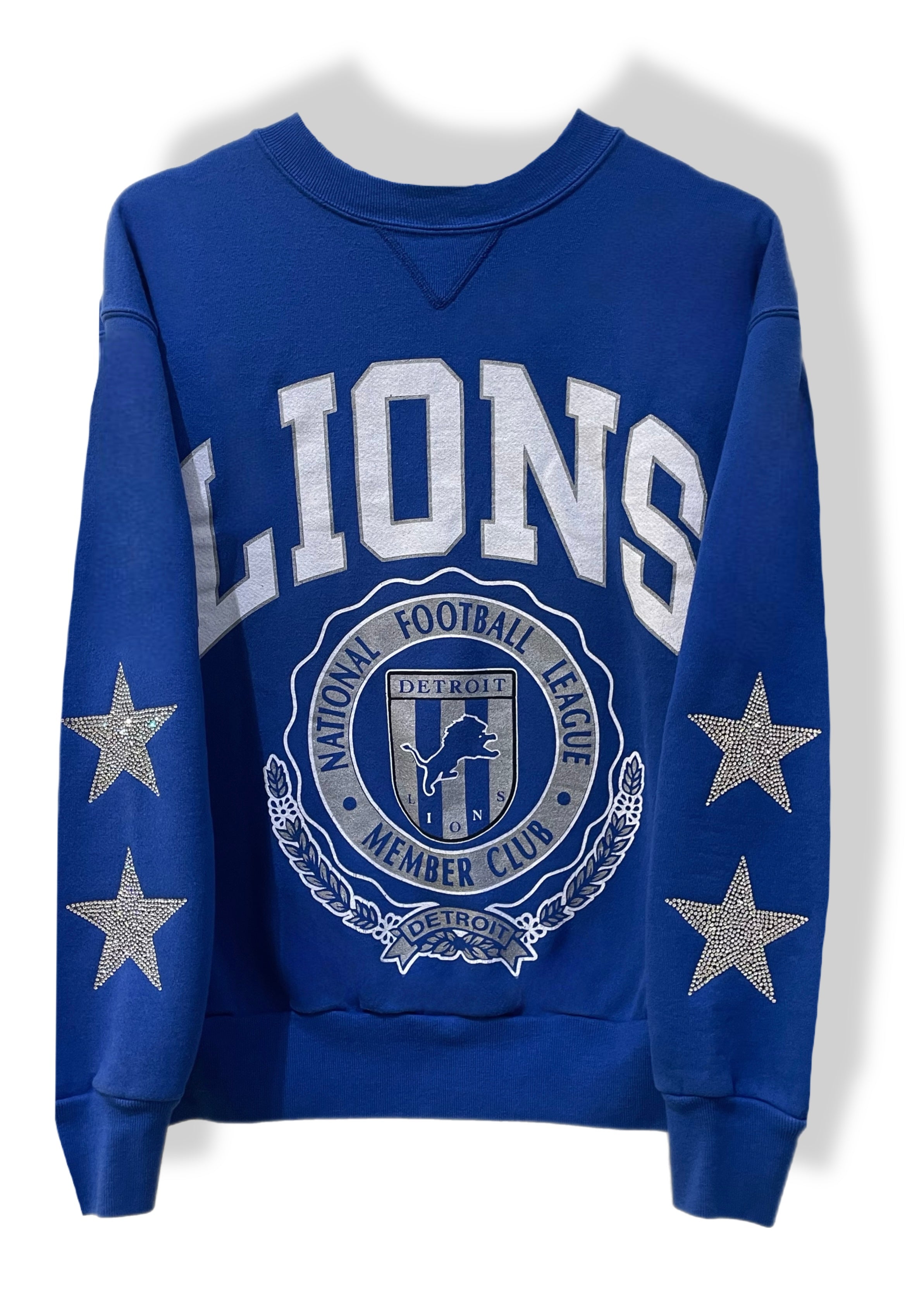 Detroit Lions, Football One of a KIND Vintage Sweatshirt with Crystal Star Design
