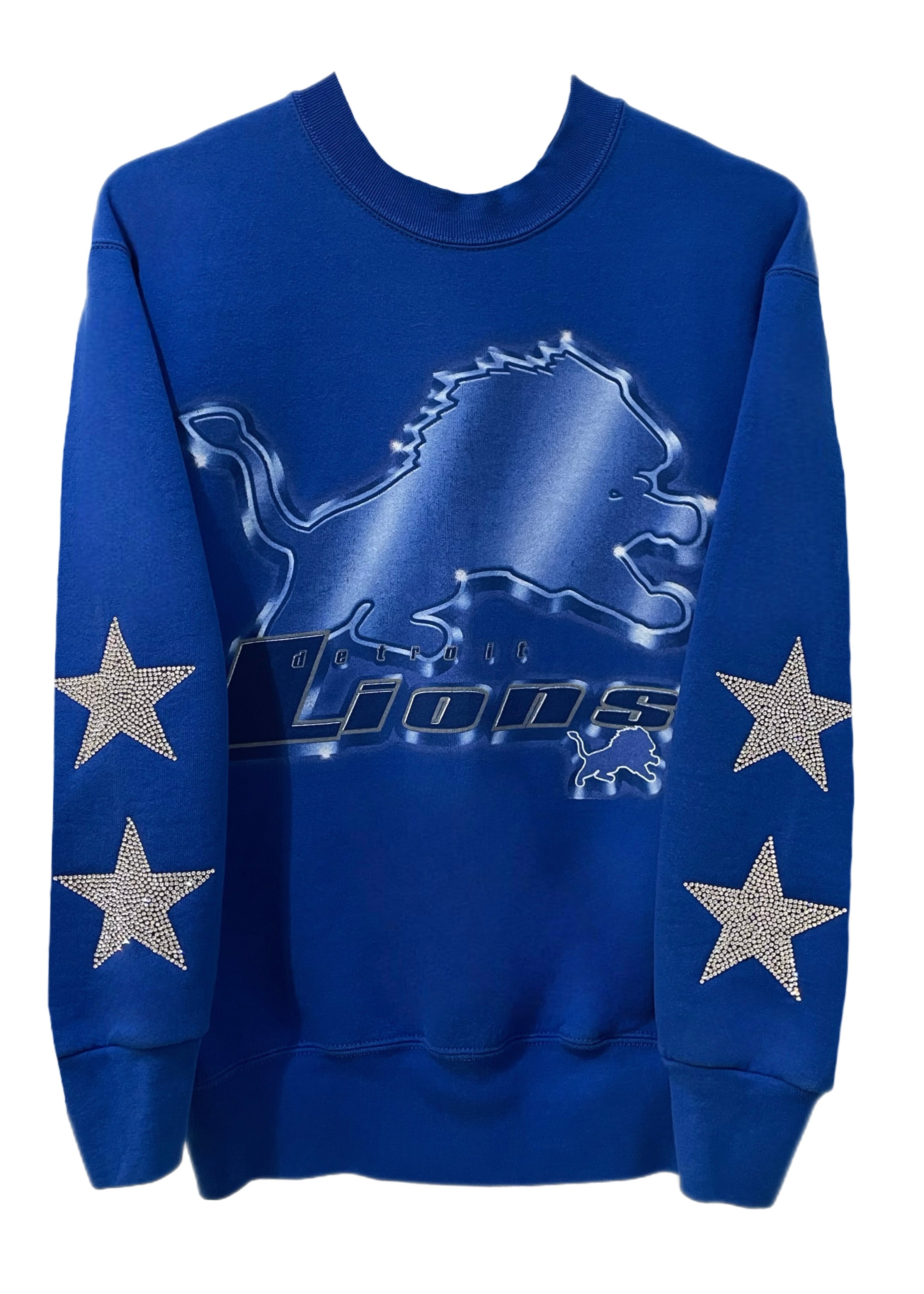 Detroit Lions, Football One of a KIND Vintage Sweatshirt with Crystal Star Design