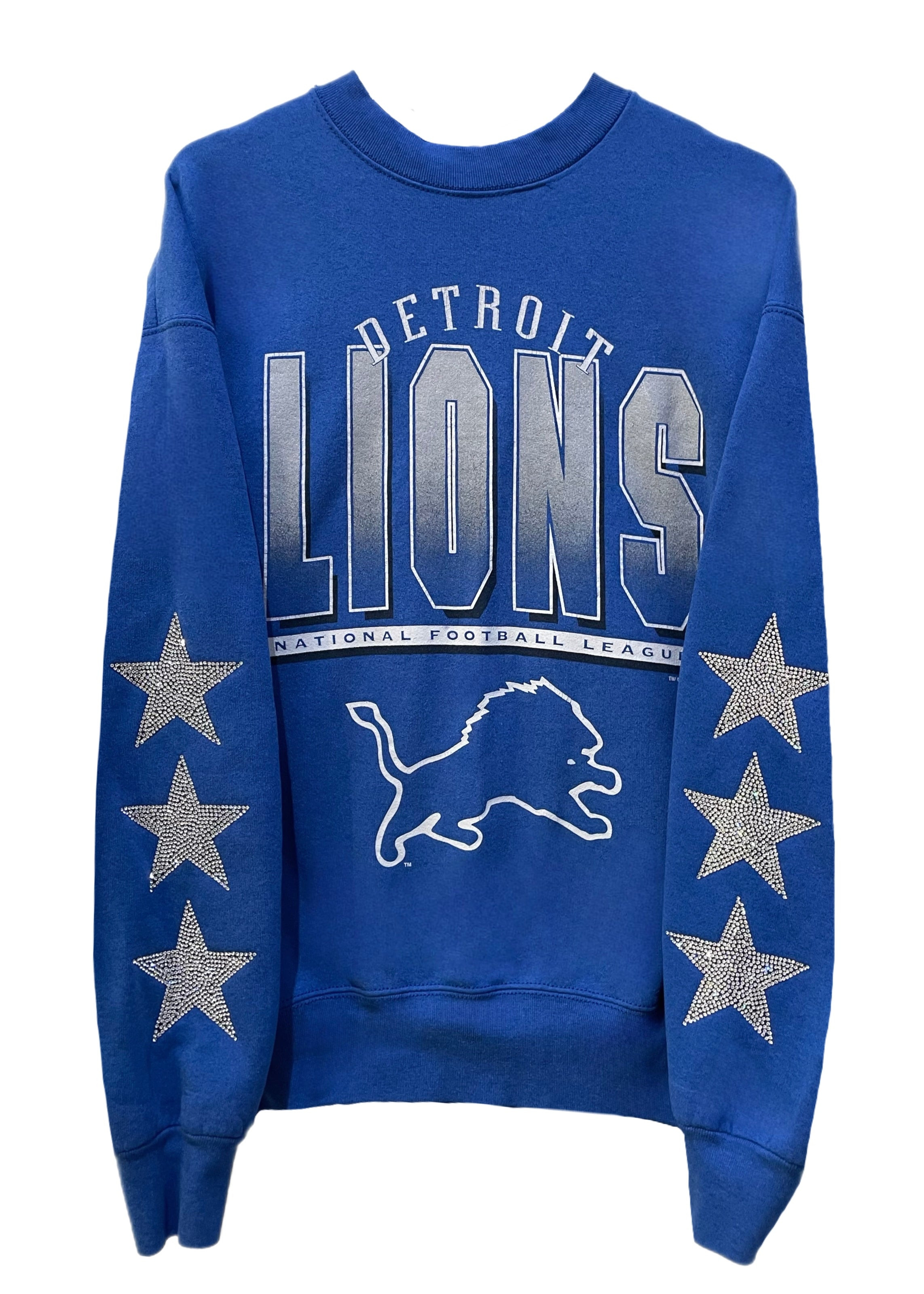 Detroit Lions, Football One of a KIND Vintage Sweatshirt with Three Crystal Star Design
